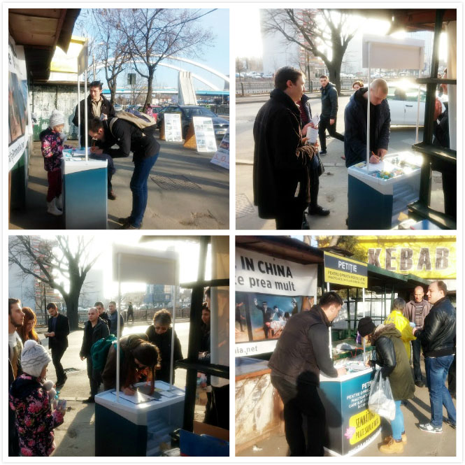 由于这个商场也临近布加勒斯特火车站和一个学生宿舍区,因此活动过程中有不少拉着行李箱的旅客和年轻学生们前来签名,谴责中共迫害法轮功。这次征签的DAFOH请愿书,是为了征集更多民众签名,旨在呼吁联合国人权事务高级专员能够制止中共对法轮功学员的活摘器官和种族灭绝的罪行。