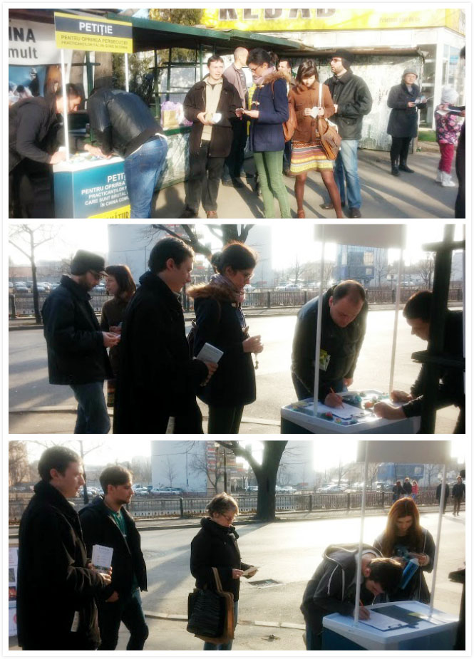 有一个名叫Razvan的羞涩的年轻学生在签名时表示,他并不知道在中国(直到二零一三年劳教所解体)居然还存在有几百万人呆在劳动集中营里,不仅无偿劳动还要遭受严刑拷打的现象。他不仅签了名还表示要寻找更多有关法轮功学员受迫害的资料。听到新唐人电视台有《九评共产党》节目,他说自己渴望能立刻看到视频。
