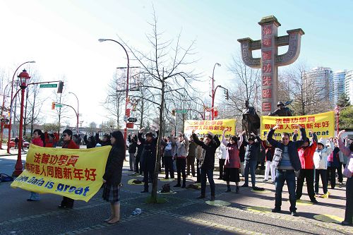 ![]() 部分温哥华法轮功学员在中国城举行讲真相活动,并给温哥华华人拜年送祝福 |