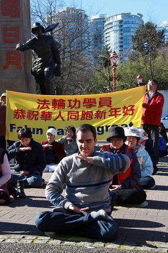 现场组织者法轮功学员何先生表示,温哥华法轮功学员在中国新年期间希望开开心心与大家一起欢度新年,给那些明白了法轮功真相的人们带来福报。每个经过这里的人,法轮功学员都对他们说新年好,希望他们明白真相,拥有福报,真善忍是普世价值,不管西人华人,所有有善念的人都会认同,这是法轮功学员带给世人的美好礼物。