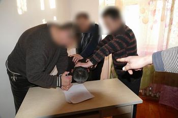 27日上午大约八点,他们把我叫到小会议室,摆个单人小学生课桌,叫我写“三书”。我不写,房跃春就命令周景峰、金言鹏、朱少鹏,说:你们帮他写。他们三个一拥而上,周景峰一手按住我的左肩,一手抓住我的头发使劲往下按,朱少鹏把我的左手拧到背后,金言鹏抱住我的右手,把笔硬塞进我的手里,说:写保证书。我不配合。金言鹏抱着我的胳膊往桌子上使劲磕,胳膊连磕代拧的疼痛难忍。这时,我已没有任何反抗能力,金言鹏连喊带叫的抓住我的手,胡乱划拉写了一张“保证书”。我因多日被折磨,已瘦弱不堪,再经这么折腾,浑身是汗,几乎虚脱,只觉得昏天暗地。他们拿来印泥,让我按手印,我拒绝。他们又一拥而上,按住我,金言鹏拽着我的手,强制按手印。按完手印后,金言鹏拿着那张纸奸笑着说:“我给你上明慧网,你师父就不要你了。”几分钟后,他们几个又一拥而上,周景峰一手按住我的左肩,一手抓住我的头发使劲往下按,朱少鹏把我的左手拧到背后,金言鹏抱住我的右手,象第一次一样。我用仅有的力气抵抗,他们就更加使劲,使我更加痛苦,就这样金言鹏抱住我的右手又写了一张所谓的“决裂书”。拿来印泥让我按手印,我拒绝,他们就强制拽着我的手按了手印。又过了几分钟,他们又一拥而上,用同样手段,写了一张“悔过书”,金言鹏脸上带着奸笑,用侮辱、讽刺的语调说:“写保证书了——”,边写嘴里还边念着,写完后,又说:“写决裂书了——”只要我反抗,他们用劲儿就更大,加剧痛苦。