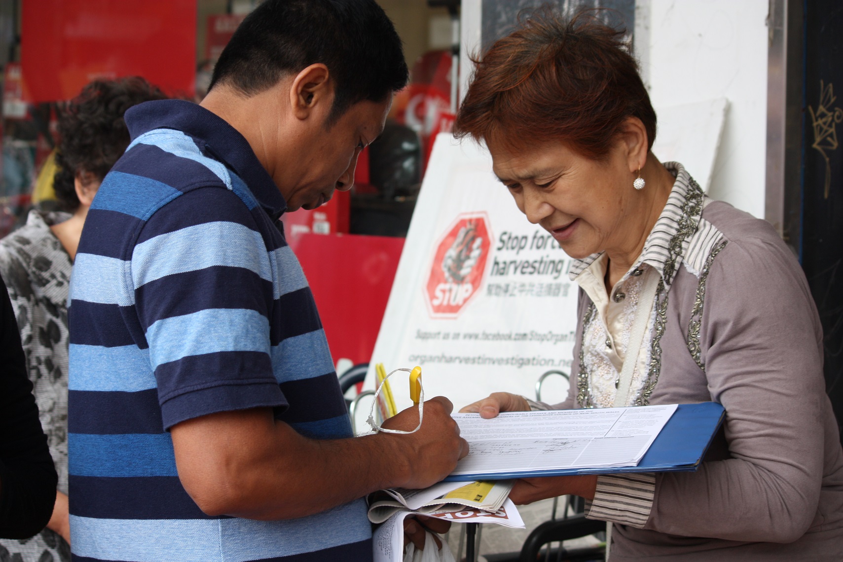 亚历克斯接着告诉记者:我还遇见一位马来西亚的夫妇,他们早就知道了“活摘”之事,并做了签名支持。他们觉得这个事件是非常震惊和恐怖的。并支持我们继续努力。
