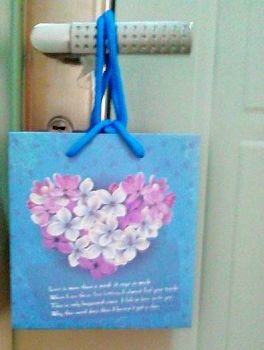 在城市里,小区相对集中,有的小区住户门一般都有门把手,以下推荐一款装神韵光盘的小礼品袋,装起来很精致,人们收到也会很珍惜去看。小礼品袋的规格是:长15.5厘米,高14.5厘米,因为为了方便携带,宽不必张开,光盘外还套有外透明塑料袋,从正面放下去,刚刚好,如下图: