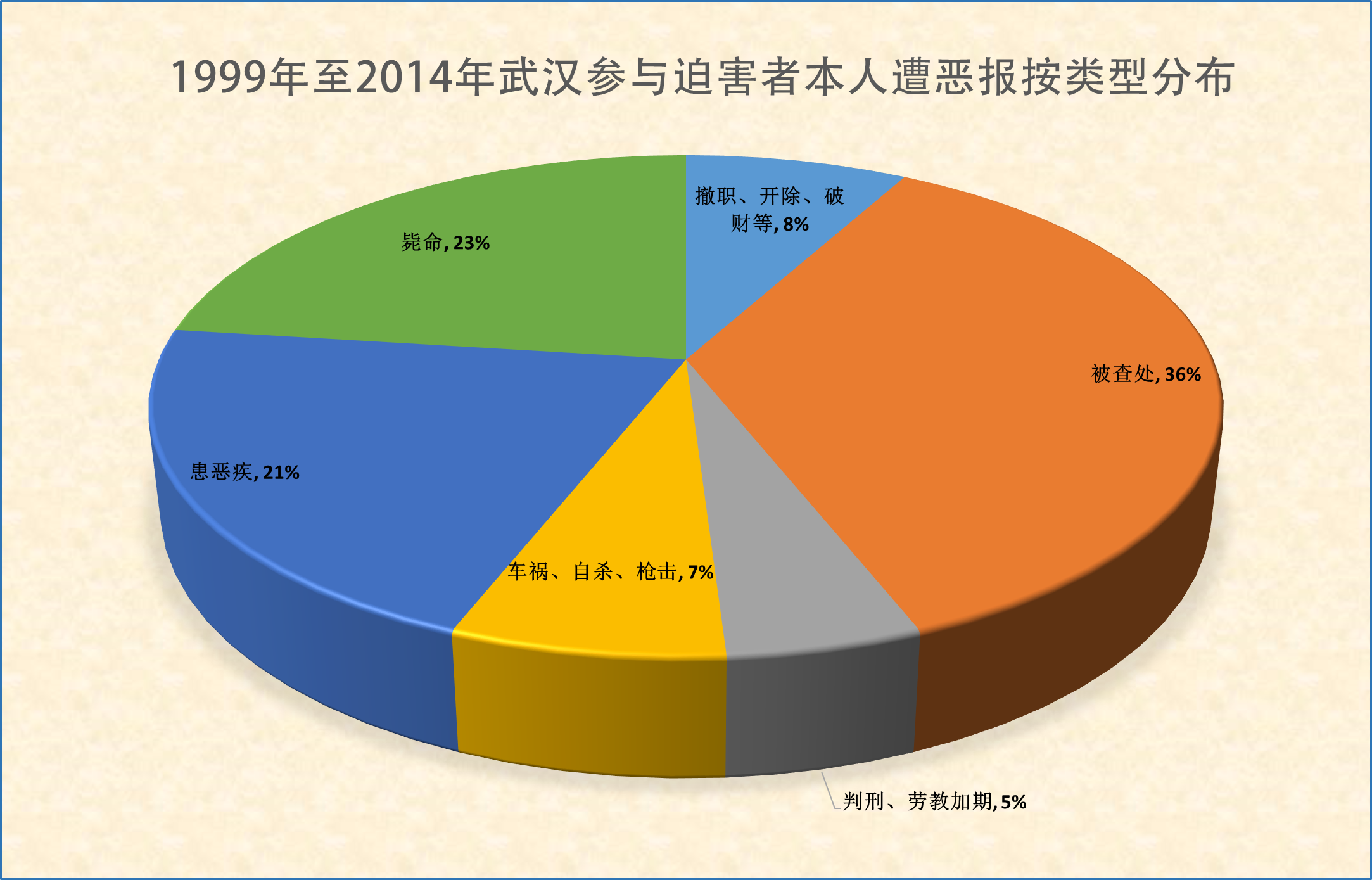 图1.湖北武汉参与迫害法轮功学员的中共恶人遭恶报按类型分布