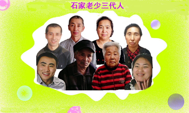 ![]() 后排左起:石孟文、大哥石孟昌、大嫂韩淑娟、大姐石秀英;前排左起:侄子石奇磊、父亲石殿立、母亲王庆荣、侄媳刘丽敏。 |
