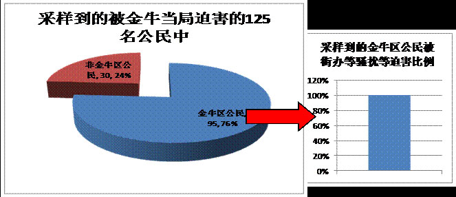 采样到的125名受到金牛当局迫害的公民中,金牛区的公民为95人,约占76%
