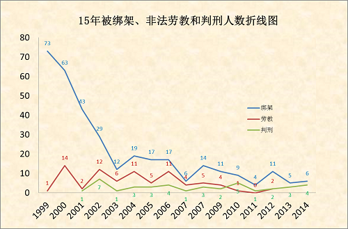 年份人数被非法劳教人员/非法刑期/非法关押地点致死