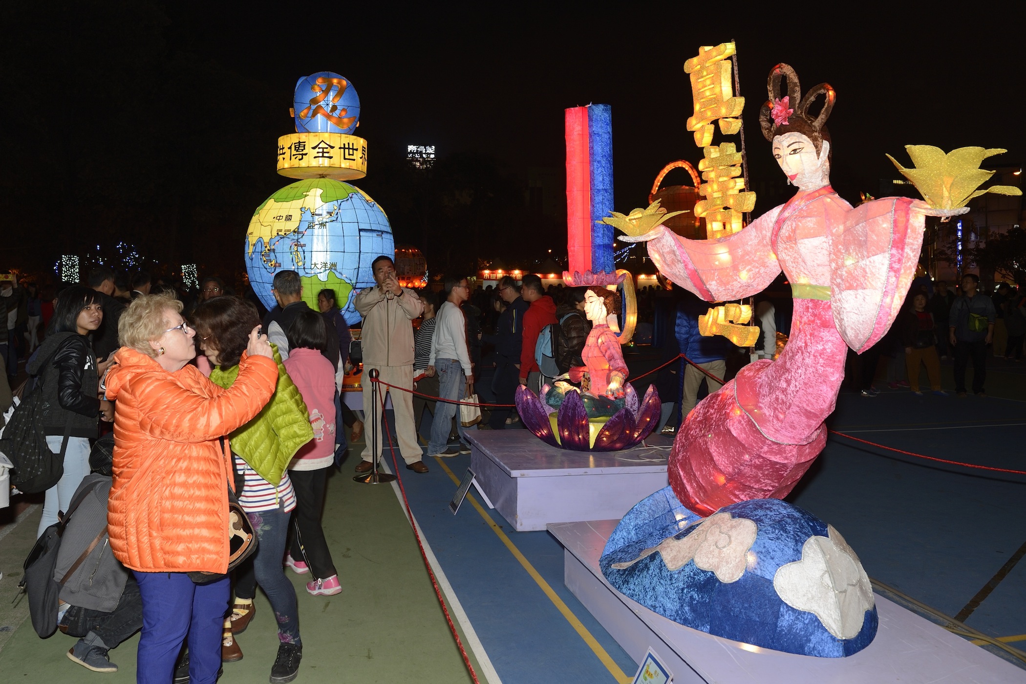 二月二十八日晚上七点半由市长林佳龙、市议员曾朝荣、法轮大法学会理事长张锦华、中华花灯艺术学会理事长翁贤良等共同点灯。灯会现场挤满来自全台各地的民众,也有很多外国游客,纷纷拍照留念,排队登上法船参观的人络绎不绝,民众赞赏金碧辉煌的法船殊胜、壮观!