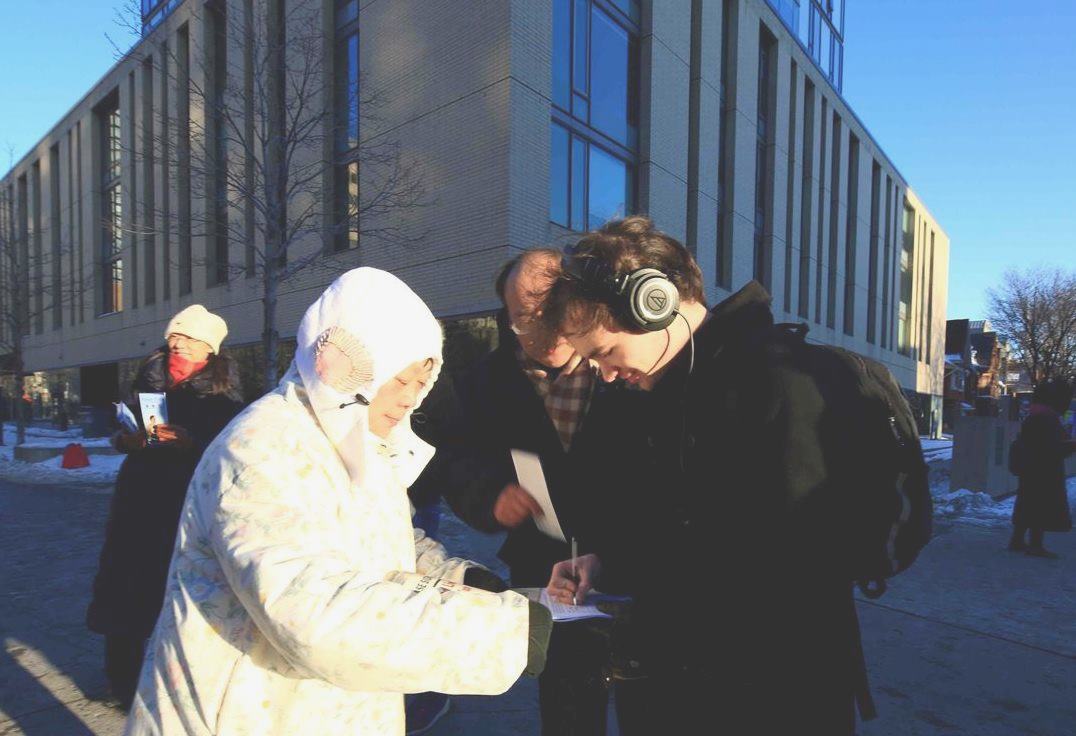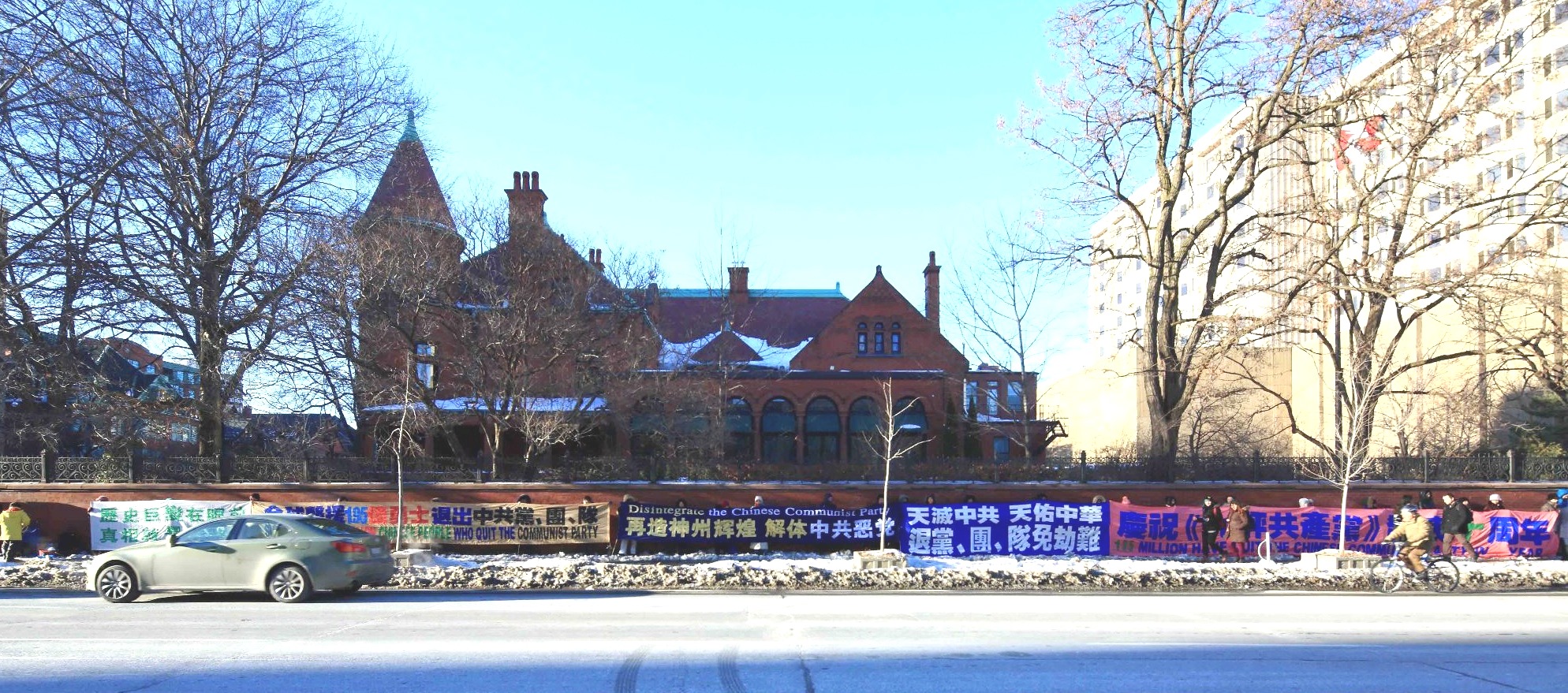 二零一五年三月二日下午,多伦多的法轮功学员和退党义工在市中心的St. George大道和Bloor大道附近举办真相长城。他们表示,有越来越多的中国人认清了中共的谎言,了解了法轮功学员所遭受迫害的真相。在这历史巨变的时刻,唤醒更多的中国民众选择光明的未来。