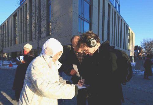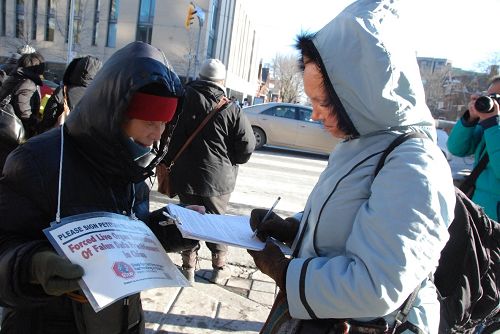 图4-7: 路人签名反对中共活体摘取法轮功学员器官。