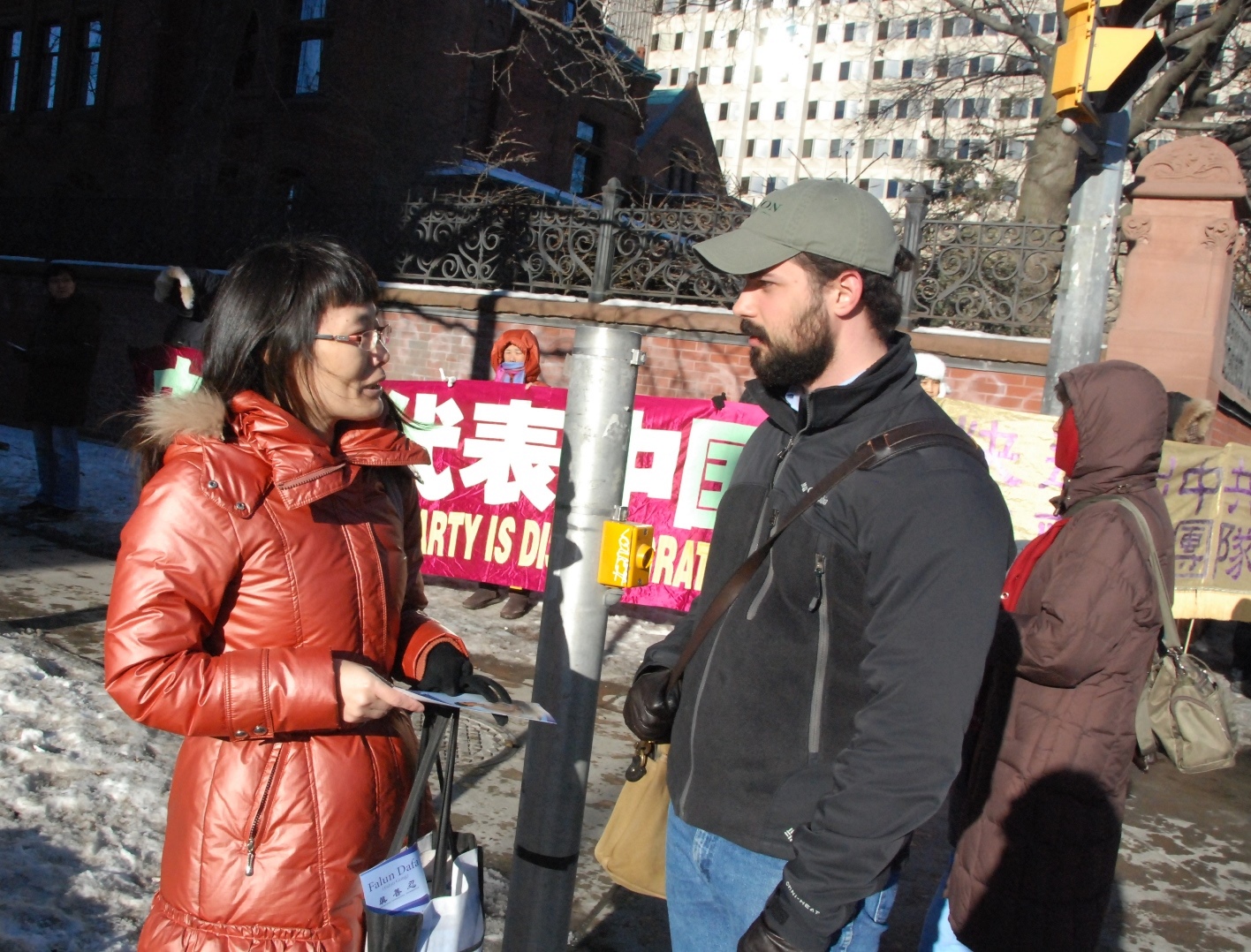 多伦多大学学生Anthony Scott说:“我认为任何镇压信仰,对信仰实行暴力都不能接受,如果中共对任何信仰推行暴力政策,我觉得人们退出它、甚至推翻它是个很好的事情。”Anthony Scott还说,如果西方社会、尤其是美国和加拿大能够联合起来,对中共发出强大声音,告诉他们:你们迫害法轮功是错的。那样,将对人权很有帮助。
