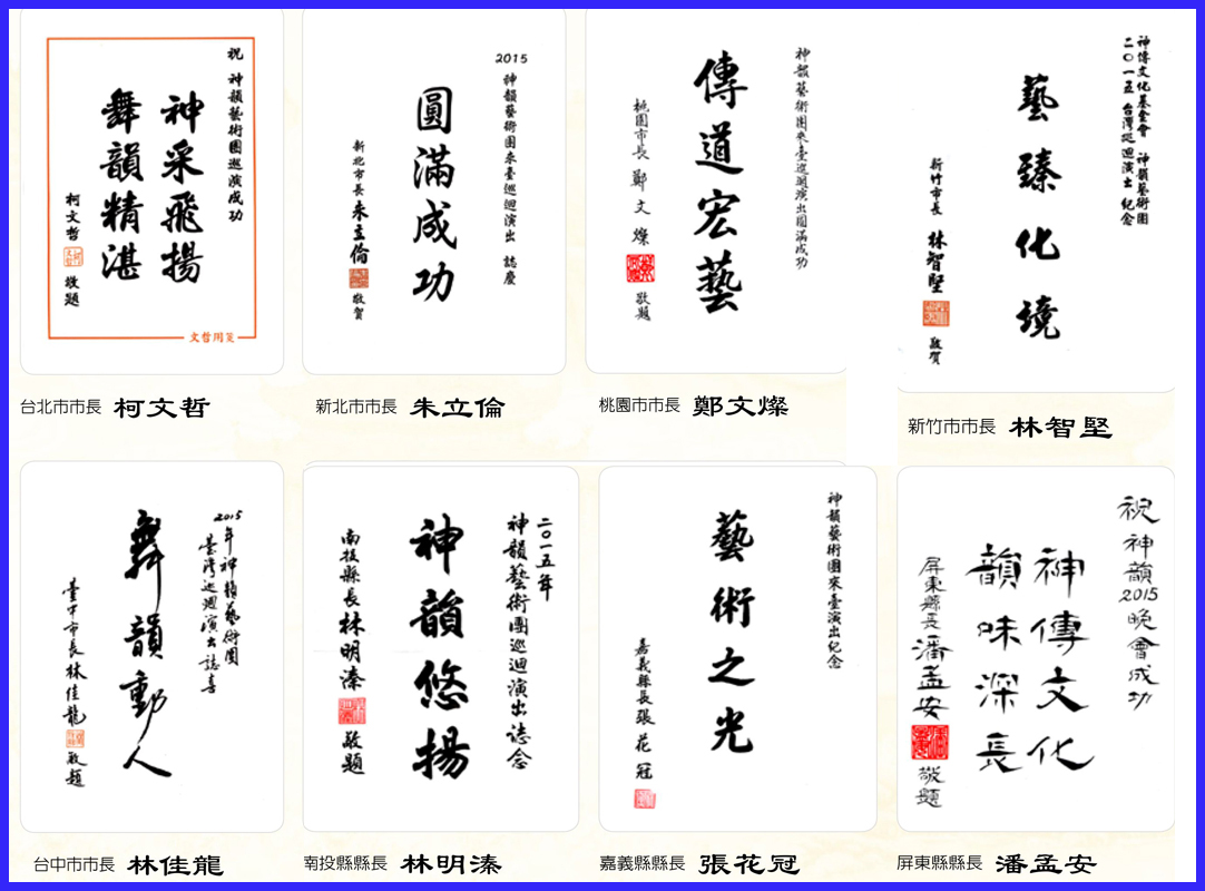 图4:台湾六大直辖市市长,及各级地方首长都发文齐贺,欢迎神韵再次访台。