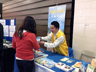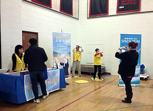 【明慧网二零一五年三月九日】(明慧记者程德波士顿综合报导)波士顿学员于二零一五年三月一日在麻州昆市高中,再次参与一年一度的昆市中国新年联欢活动,摆置法轮大法展位、示范舒缓优美的五套功法、展示大法真相资料,利用机缘介绍法轮大法的美好、弘传的盛况及学员在大陆遭受的迫害