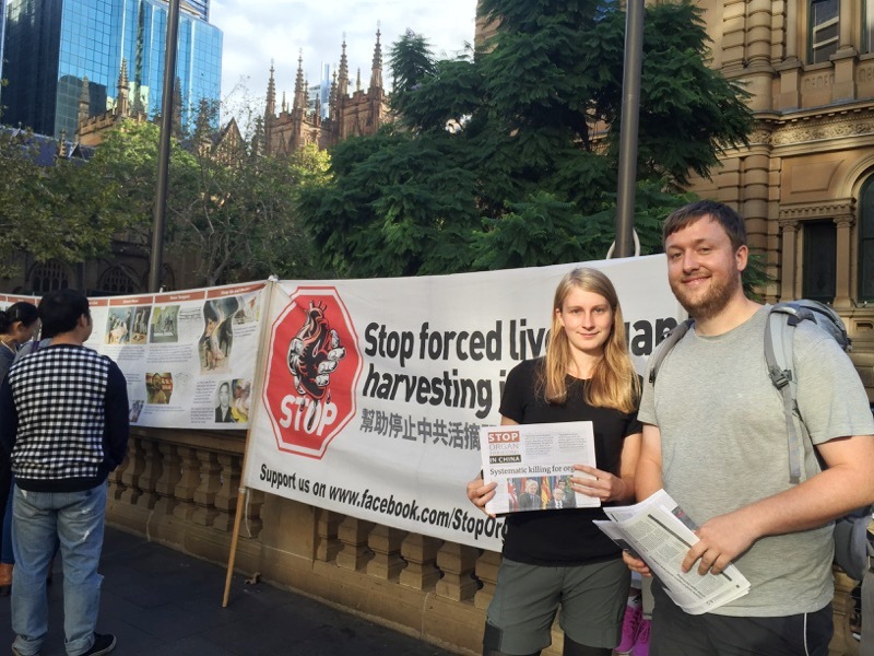 ![]() 德国游客琳达(Linda)和男朋友菲尔(Phil) 在悉尼主动加入反活摘器官活动,传播真相 |