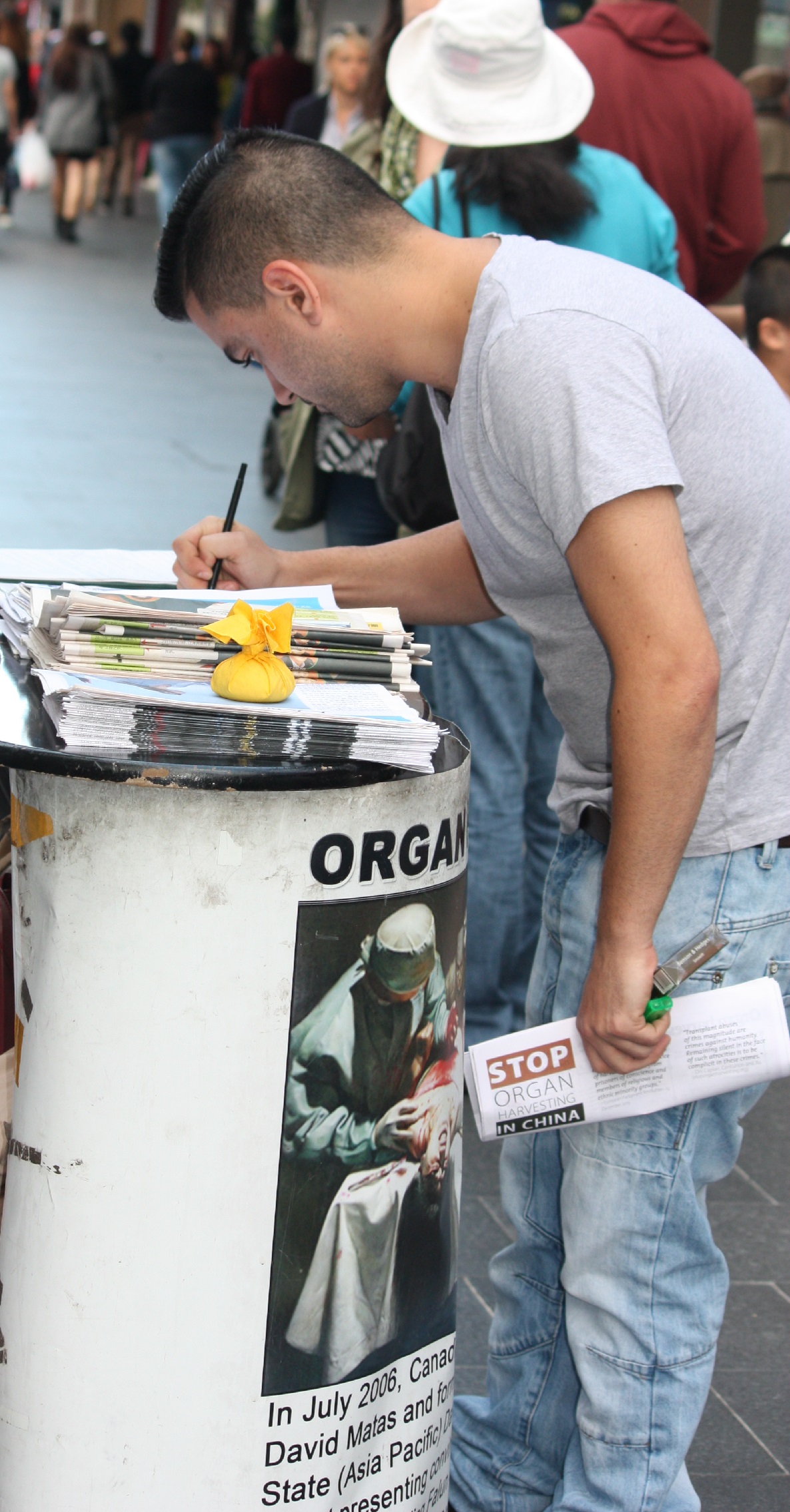 还有许多中国大陆来悉尼读书的留学生也纷纷停下脚步了解真相,签名反活摘器官并退出中共党、团、队组织。