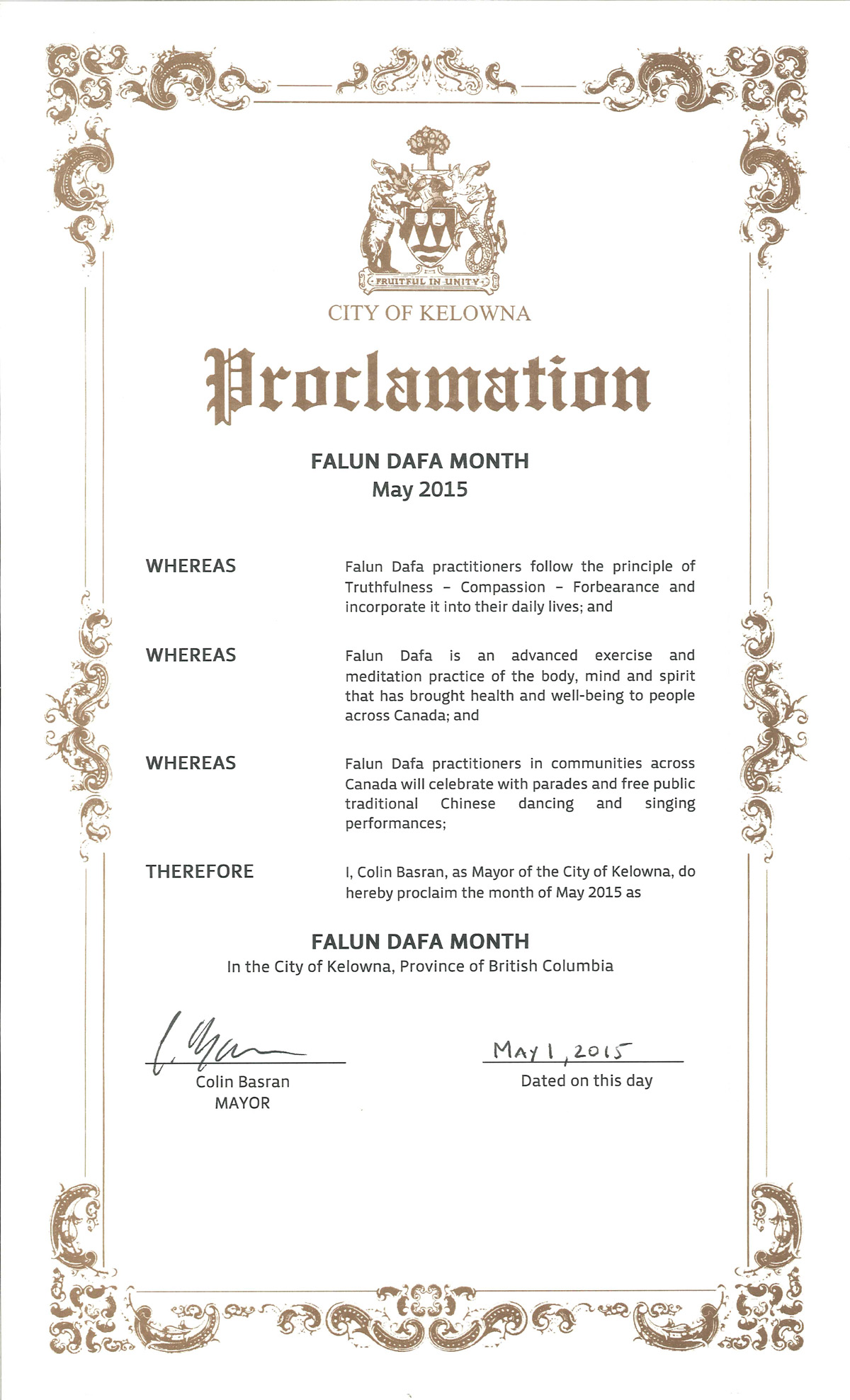 鉴此,我,基隆拿市市长科林•巴士拉(Colin Basran),特此宣布二零一五年五月为