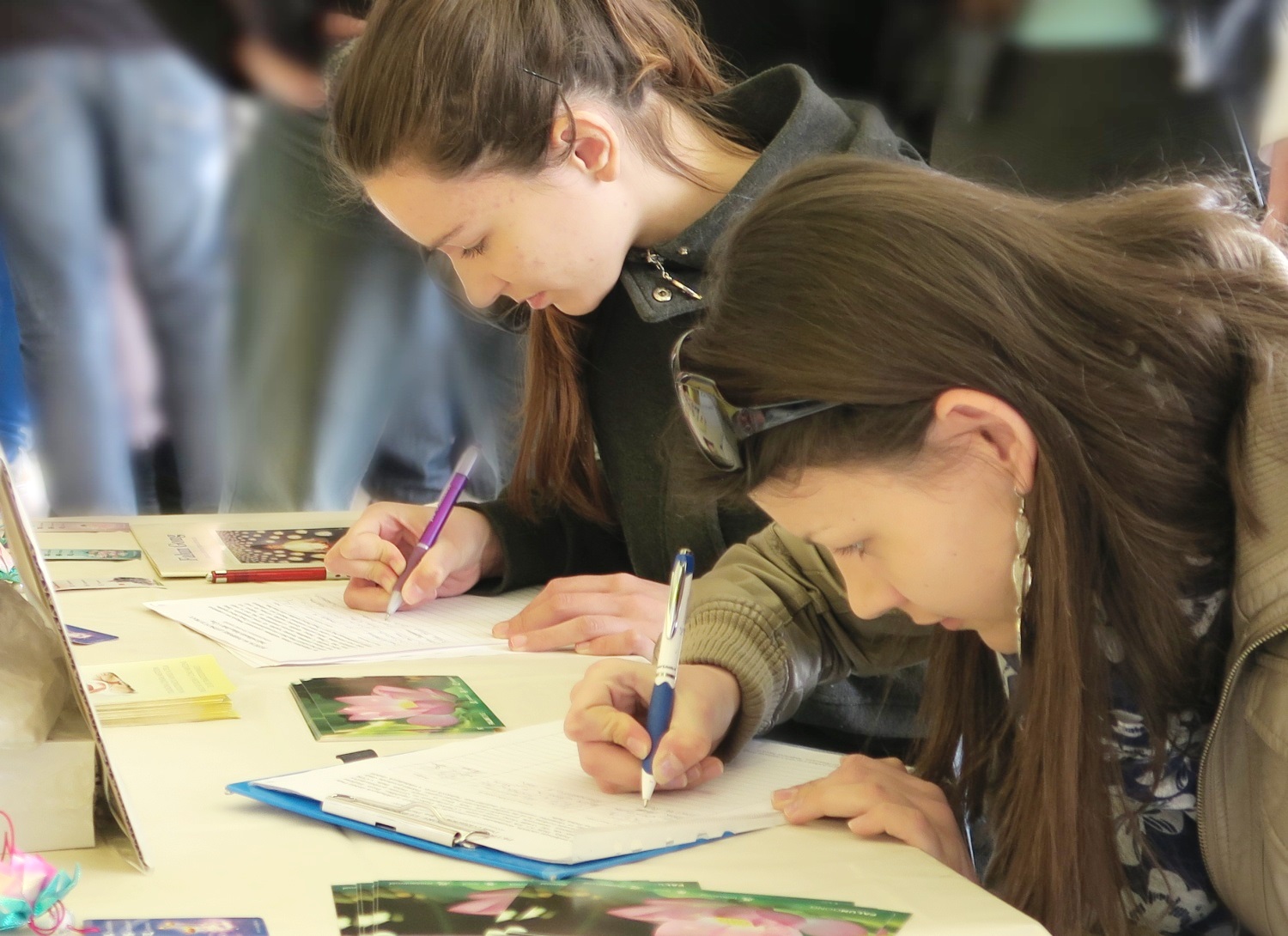 图2-3:斯洛伐克的青年学子签名支持法轮功反迫害,希望自己的政府能够帮助停止迫害
