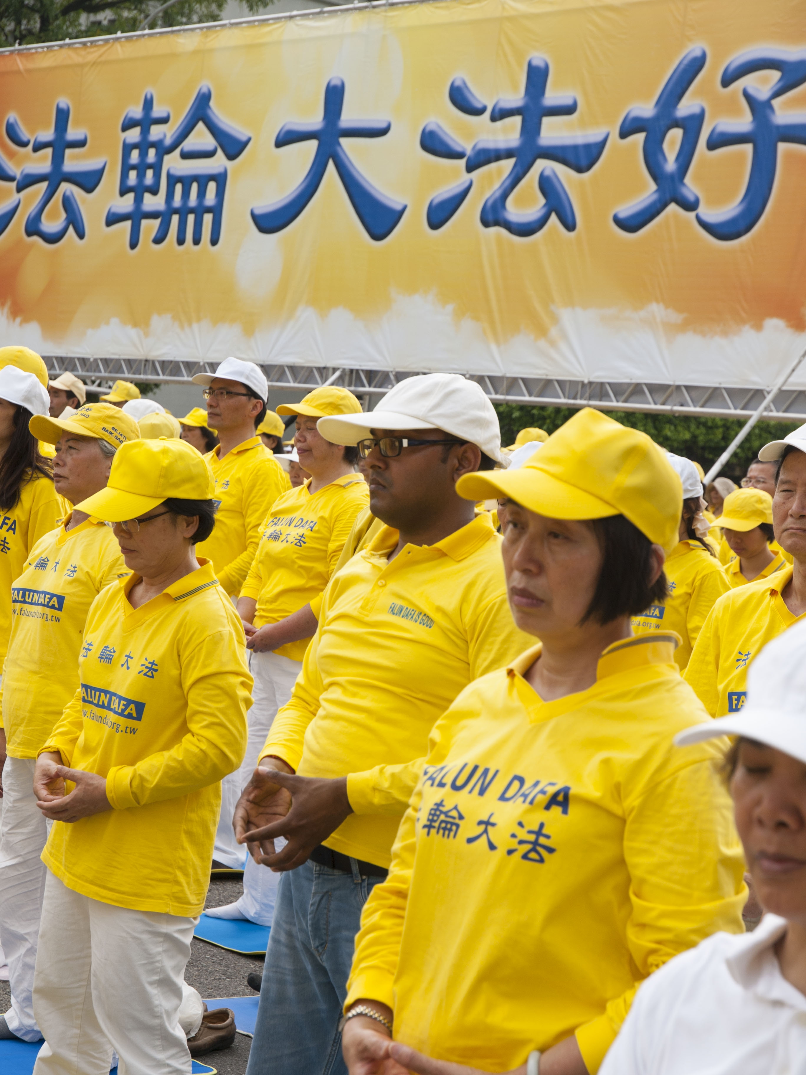 记者会结束后,近三千人演炼五套功法,吸引过往的民众与大陆游客观赏。陈先生骑摩托车经过,刻意绕过来看,他表示在媒体看过关于法轮功的相关报导,听到法轮功学员炼功祛病健身的分享,感到很神奇。得知住家附近有炼功点,他表示回去后会要到炼功点进一步了解。