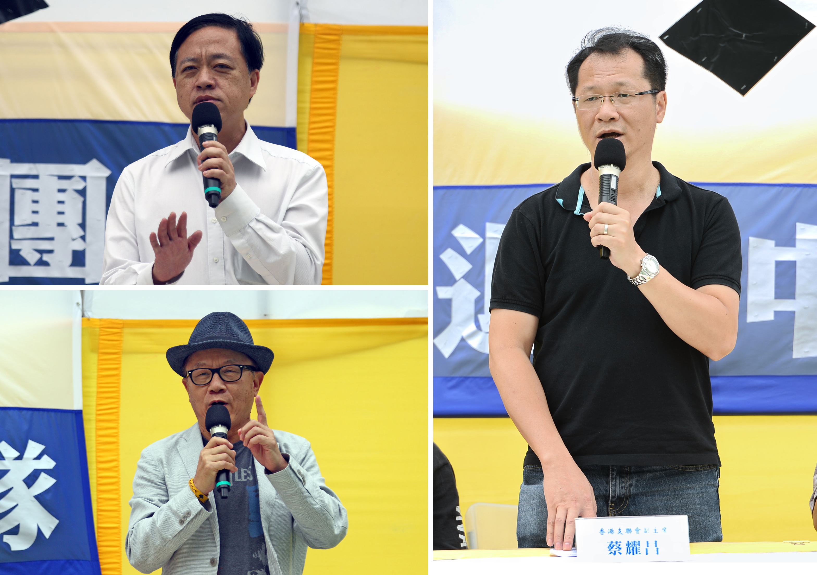 ![]() 保卫香港自由联盟发言人韩连山(左下)、香港支联会副主席蔡耀昌(右)及香港西贡区议员林咏然(左上)都表示:唯有天灭中共,中国人才能有自由与尊严,才能有好日子过。 |