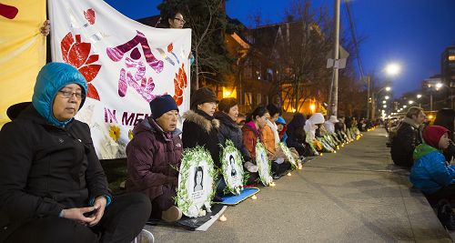 ![]() 图7:二十五日晚上八点至九点半,多伦多法轮功学员们在中领馆前举行烛光悼念活动,悼念被中共迫害致死的中国大陆法轮功学员们。 |