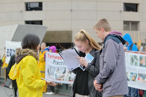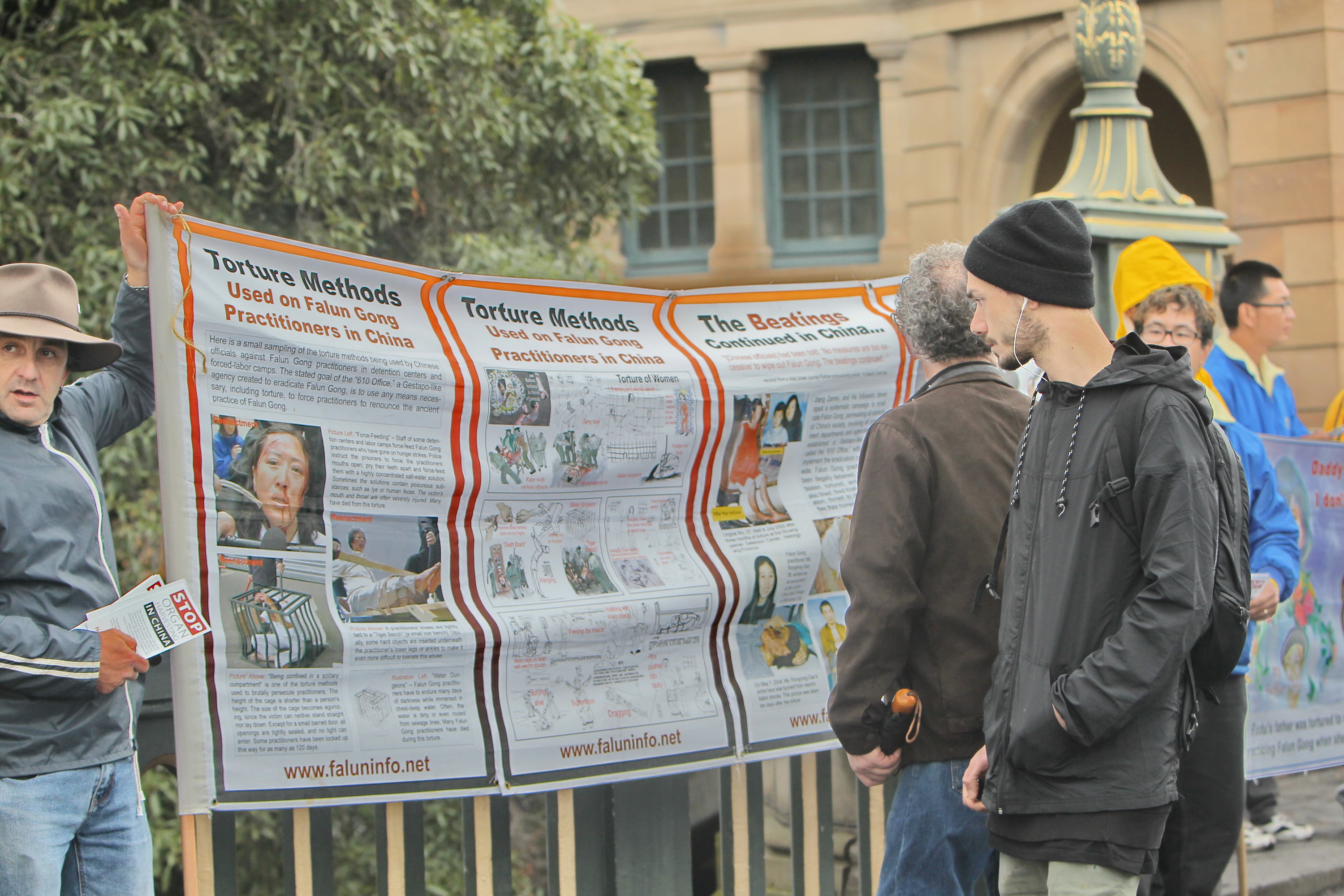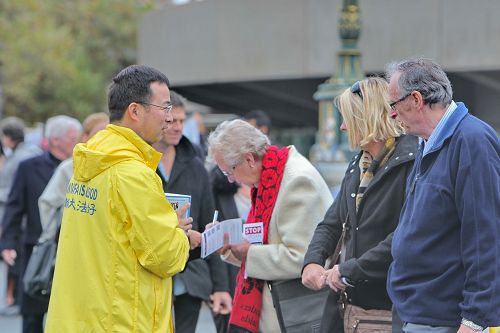 当天适逢澳洲的公共假日——澳纽军团日,缅怀纪念在历次战事中为保卫祖国、维护和平而捐躯的澳洲英雄们。上午一年一度的大游行之后,王子桥畔依然熙熙攘攘,墨尔本法轮功学员的活动引起了许多市民和游人的关注,许多路人停下脚步倾听学员们讲述真相,并签名呼吁停止迫害。三个小时之内,超过七百人在征签表上签了名。