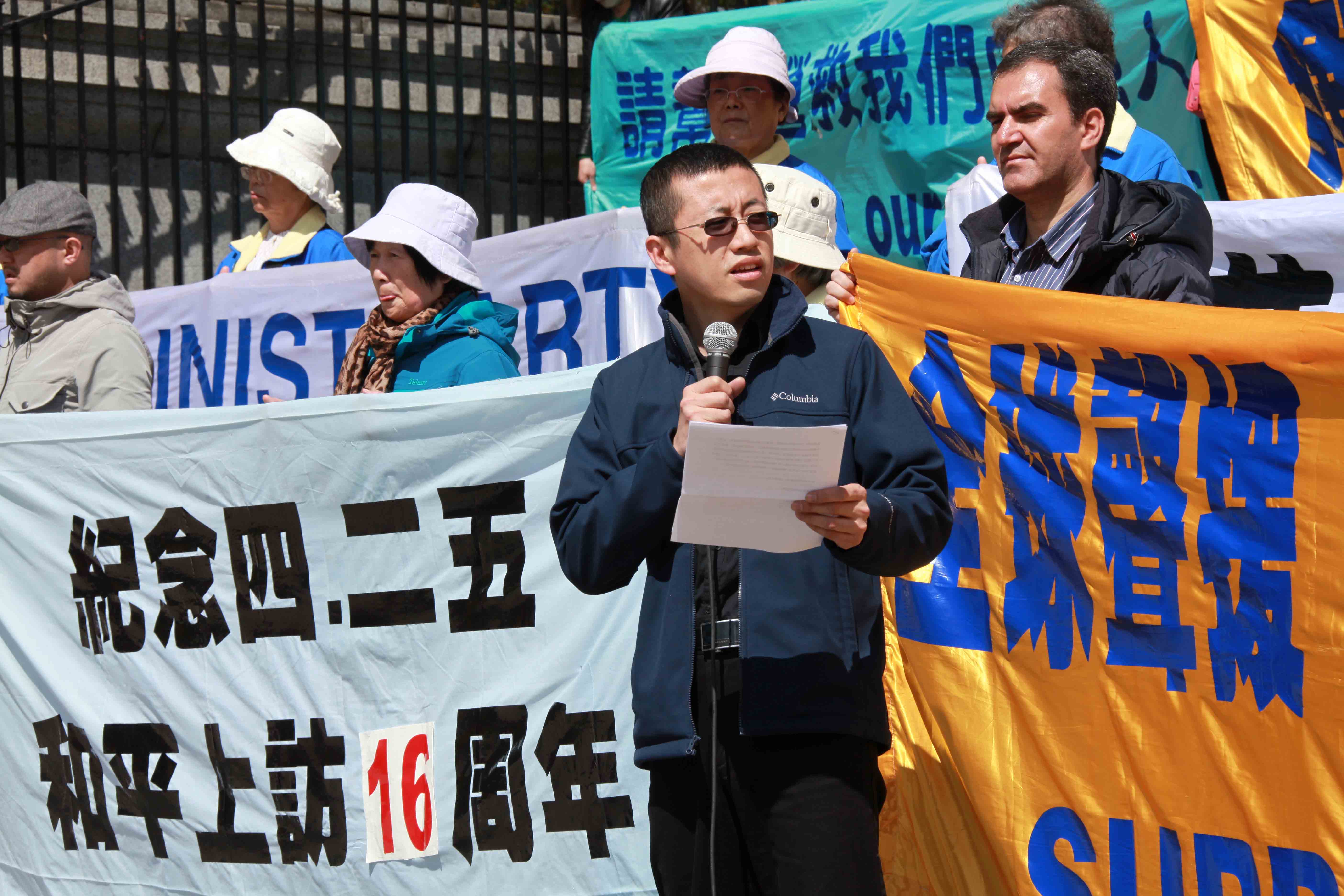 ![]() 图3:民主中国阵线驻温哥华代表Eric 陈在集会发言 |