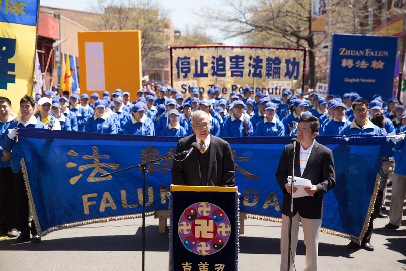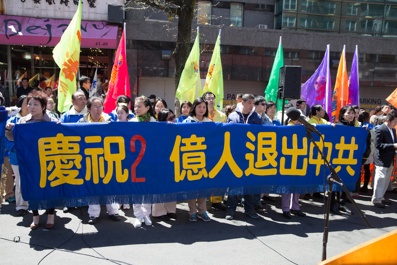 ![]() 纽约四•二五集会,贺二亿人三退获新生。 |