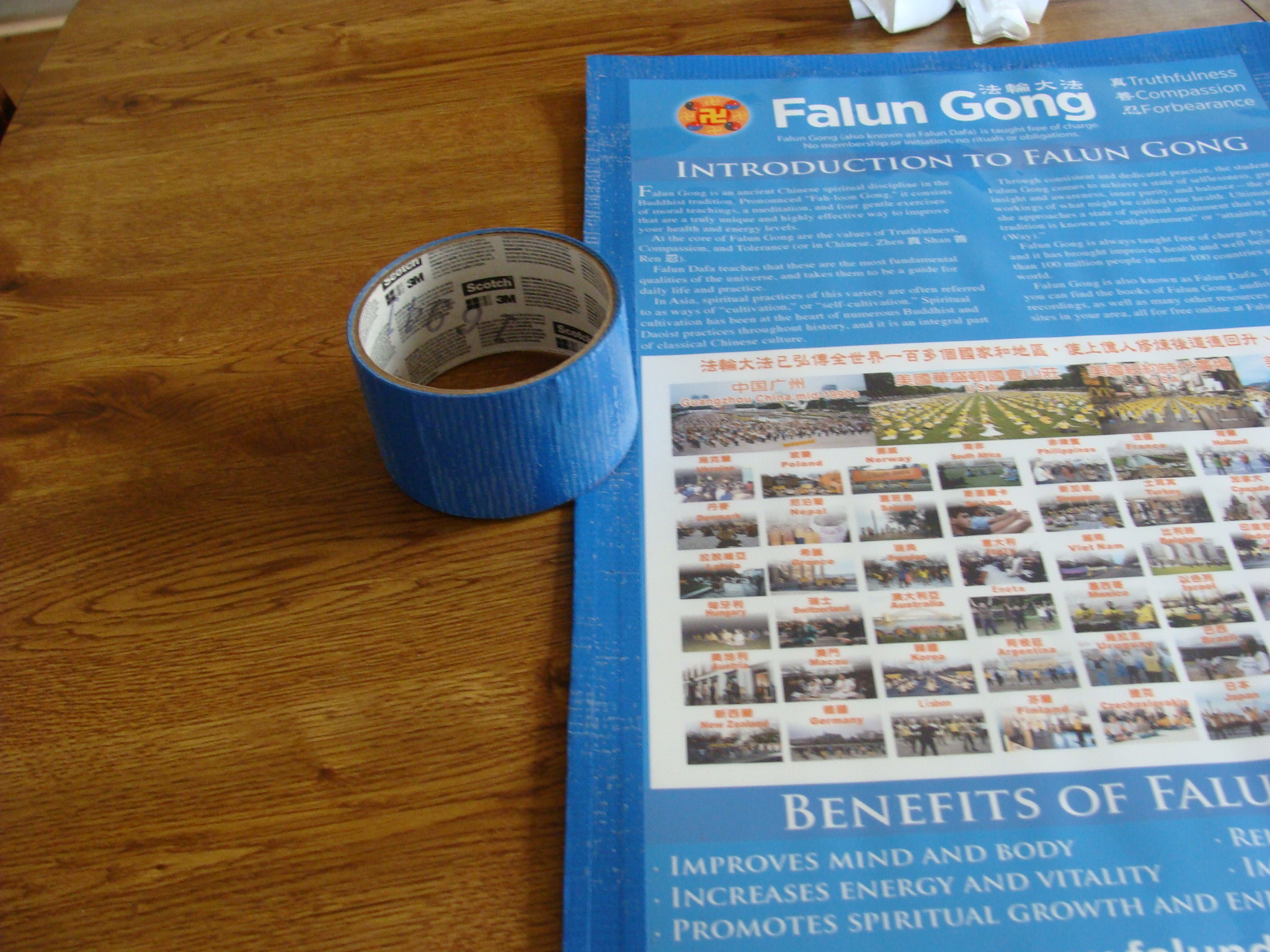 展板内容可以根据需要设计,而且费用也不高,一般同修都能承受,如果很多同修能自备一个这样的小行李箱(也可用推小车)真相展板,我们就可以如大陆资料点遍地开花一样,让海外景点的真相点也遍地开花,因此我们推荐出来供同修参考。