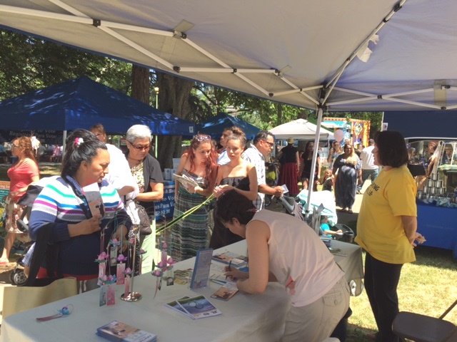 一位非裔妈妈,一看到法轮功展台,就惊喜地叫起来,“哎呀,我就是想找这个。我一直在寻找精神上的东西。我在哪里看到过这个(法轮功),一直想要再找到,太好了!”临走又问小孩是否可以炼功?当得到答复与解释后,开心地说:“我也想让我女儿在精神上有一个指导。”