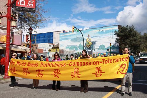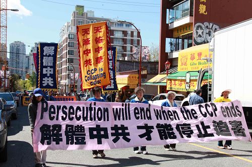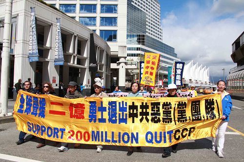 图1-8:温哥华法轮功学员大游行,纪念四•二五,庆祝二亿人三退 |