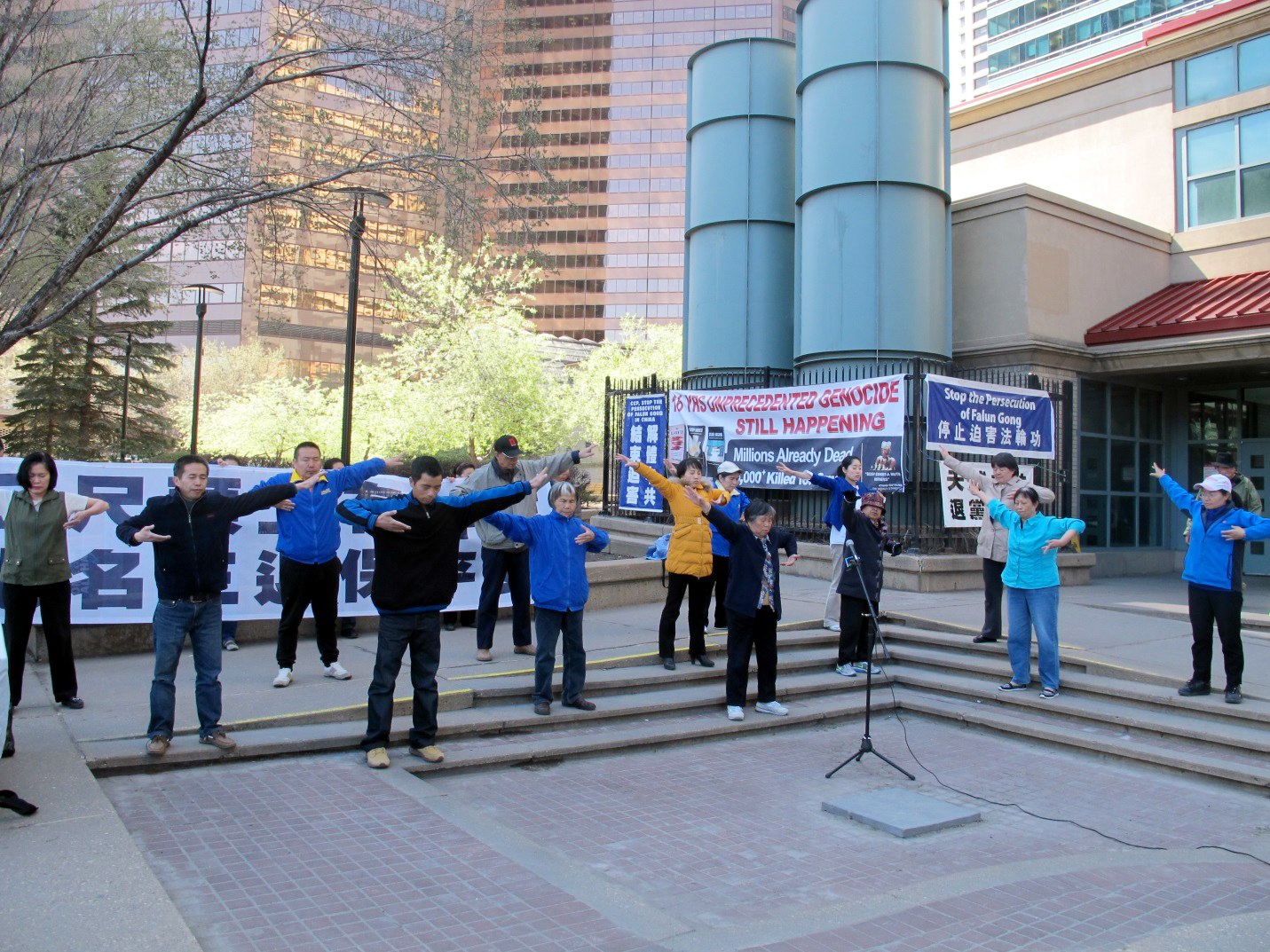 卡尔加里部分法轮大法学员在集会后进行功法演示