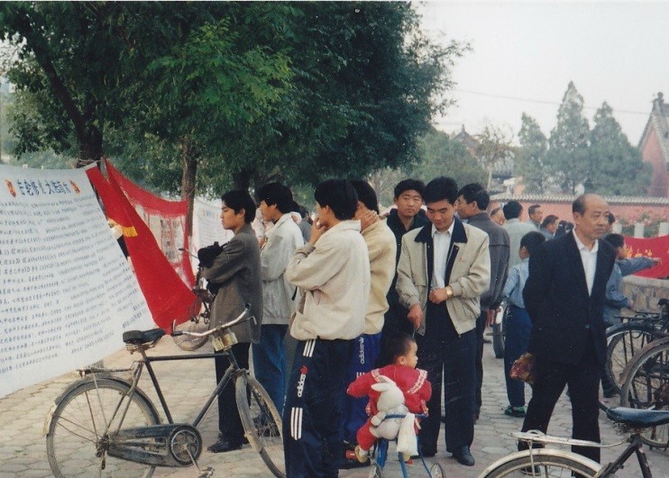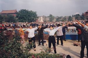 历史照片:法轮功学员在岱庙南门花园广场炼功弘法
