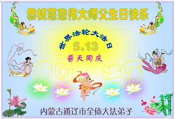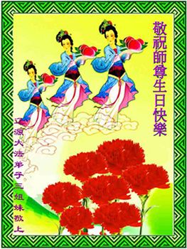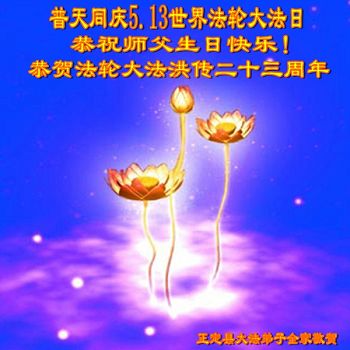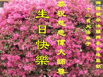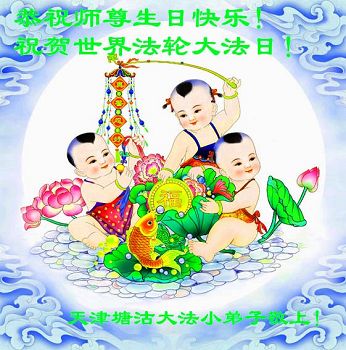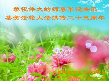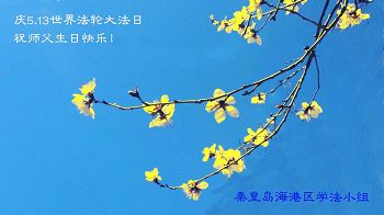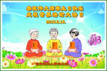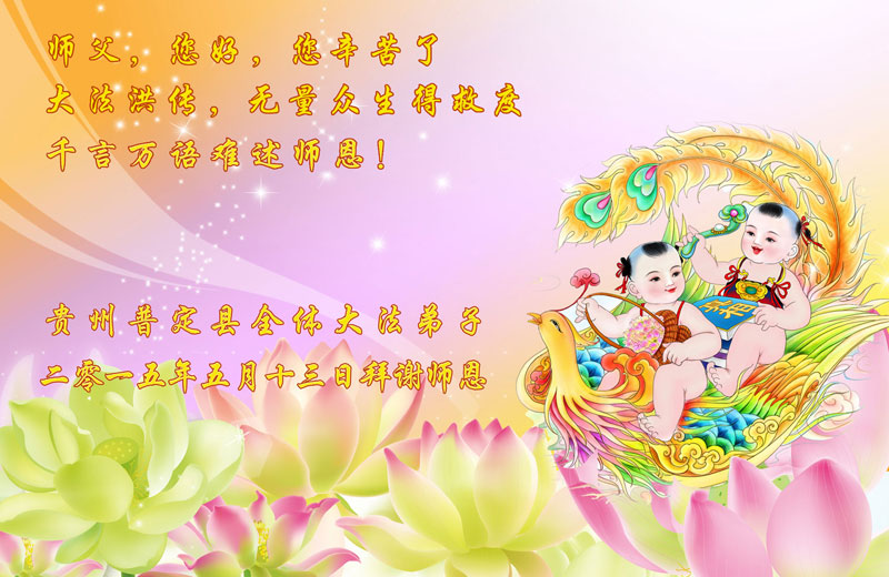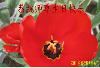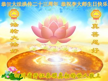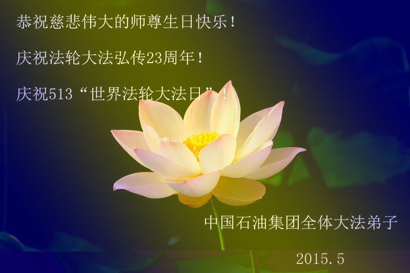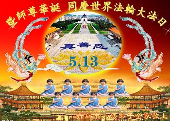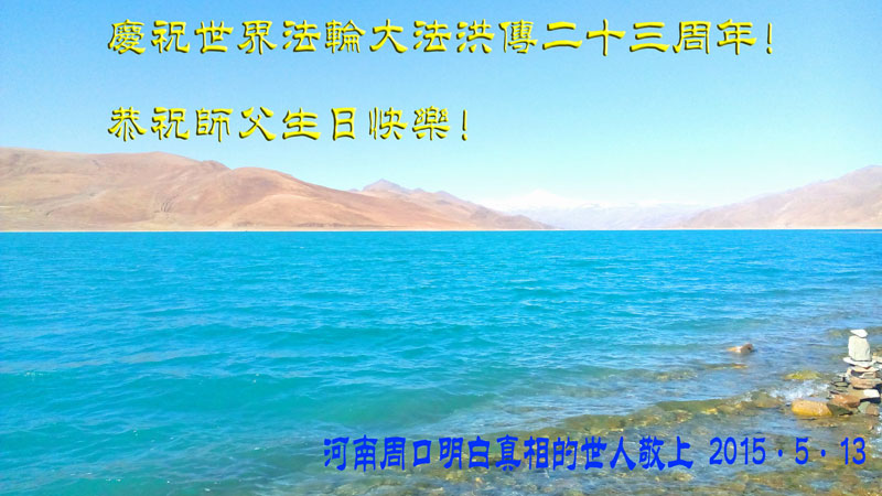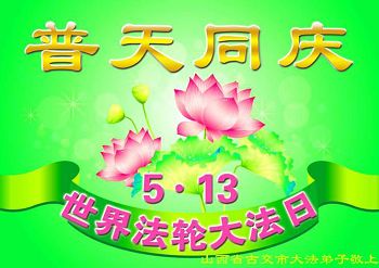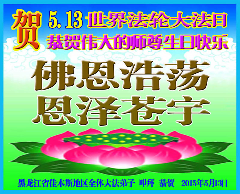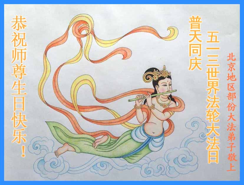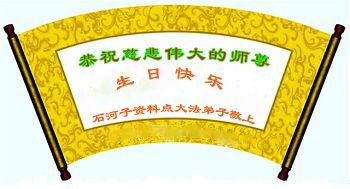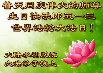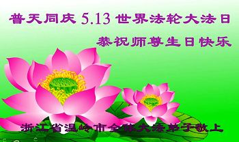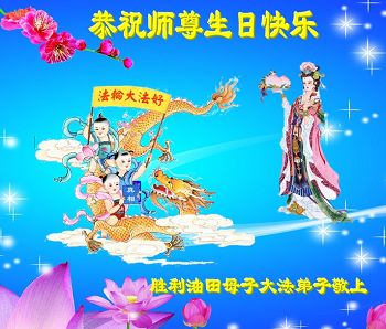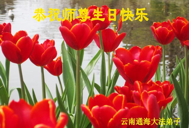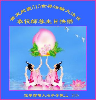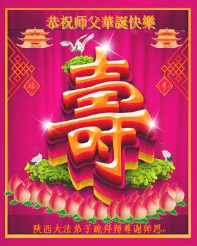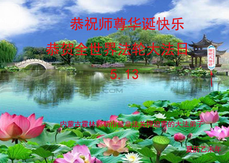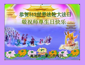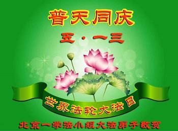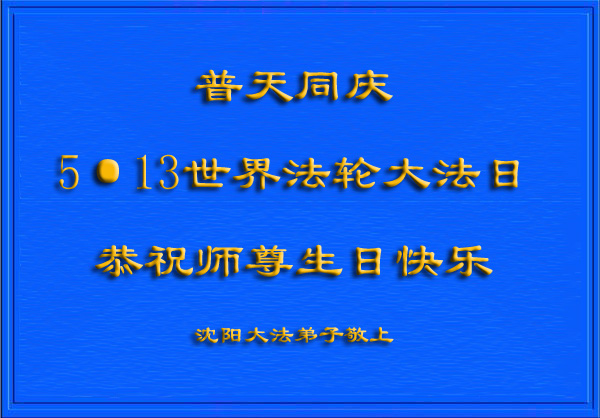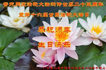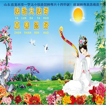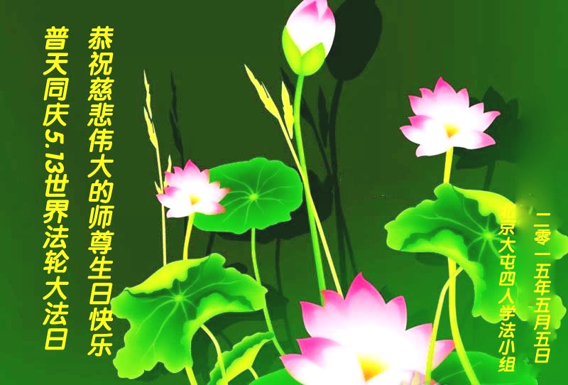 在这普天同庆的日子里,我们与全世界的大法弟子同心欢呼:祝愿慈悲伟大的师尊生日快乐!庆祝五一三世界法轮大法日!此时此刻千言万语难以表达弟子的心情,只能说一句,请师尊放心,弟子一定牢记自己历史的使命,助师正法,救度众生。慈悲伟大的师尊您辛苦了!