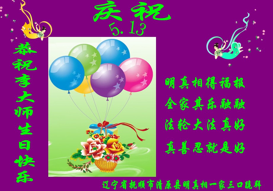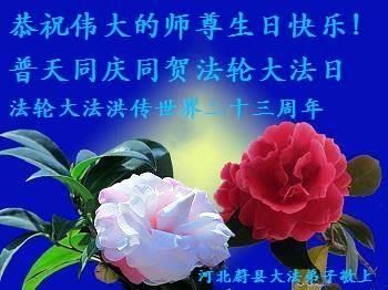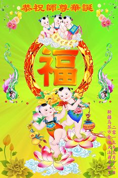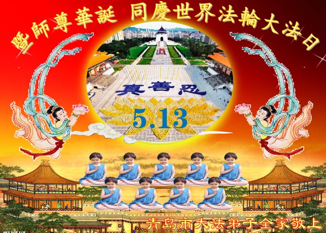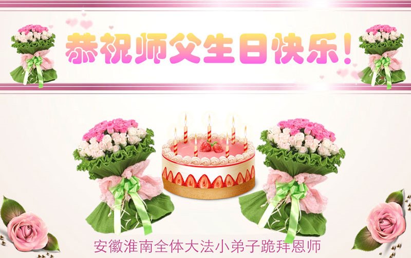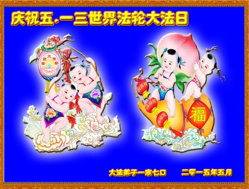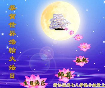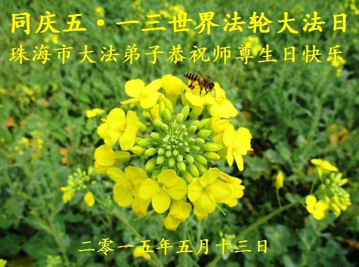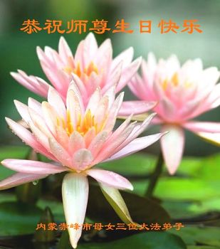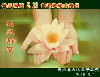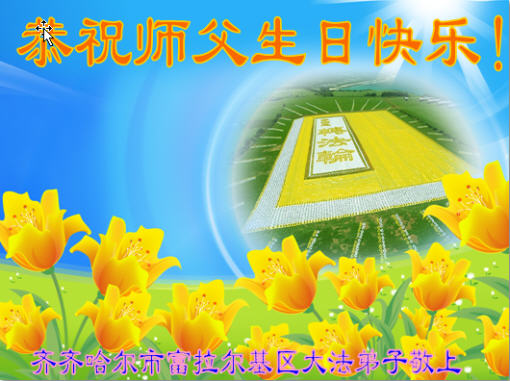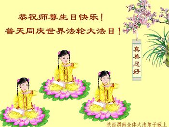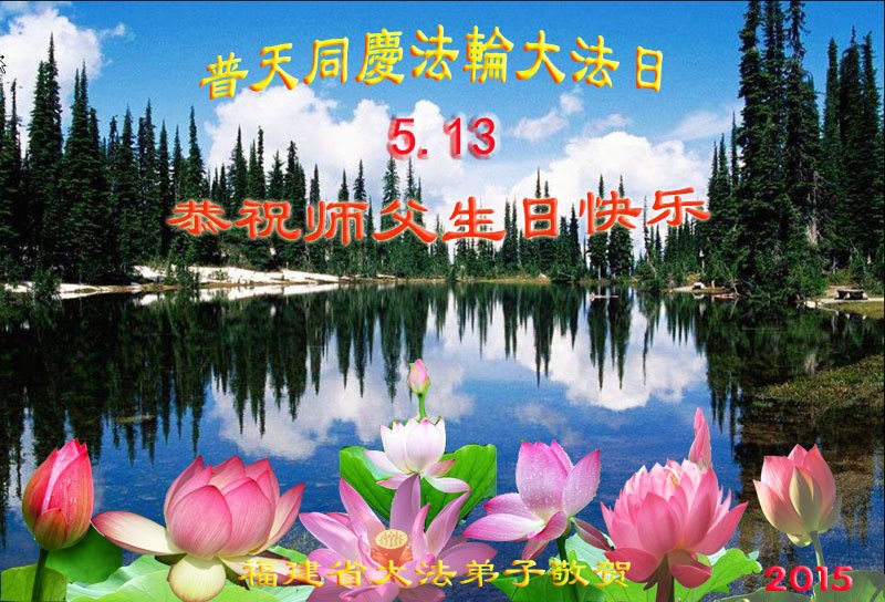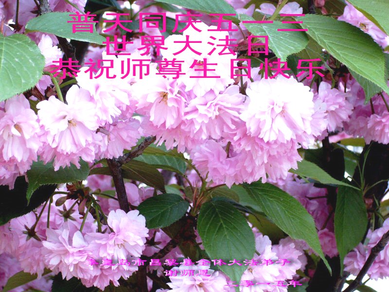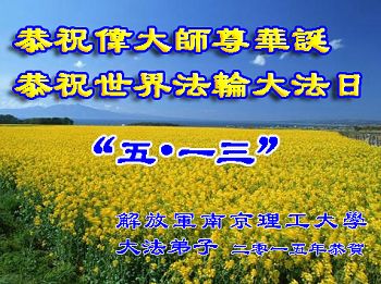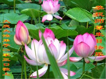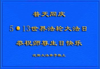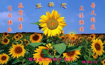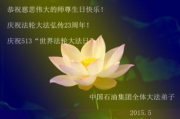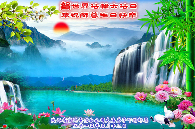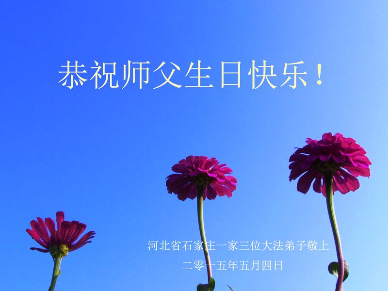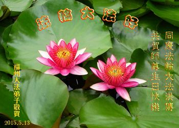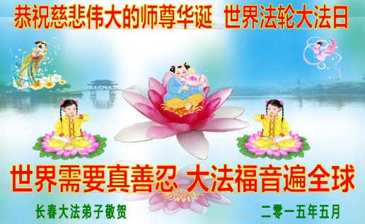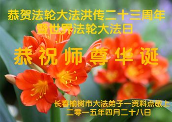 在这普天同庆的日子里,我们与全世界的大法弟子同心欢呼:祝愿慈悲伟大的师尊生日快乐!庆祝五一三世界法轮大法日!此时此刻千言万语难以表达弟子的心情,只能说一句,请师尊放心,弟子一定牢记自己历史的使命,助师正法,救度众生。慈悲伟大的师尊您辛苦了!