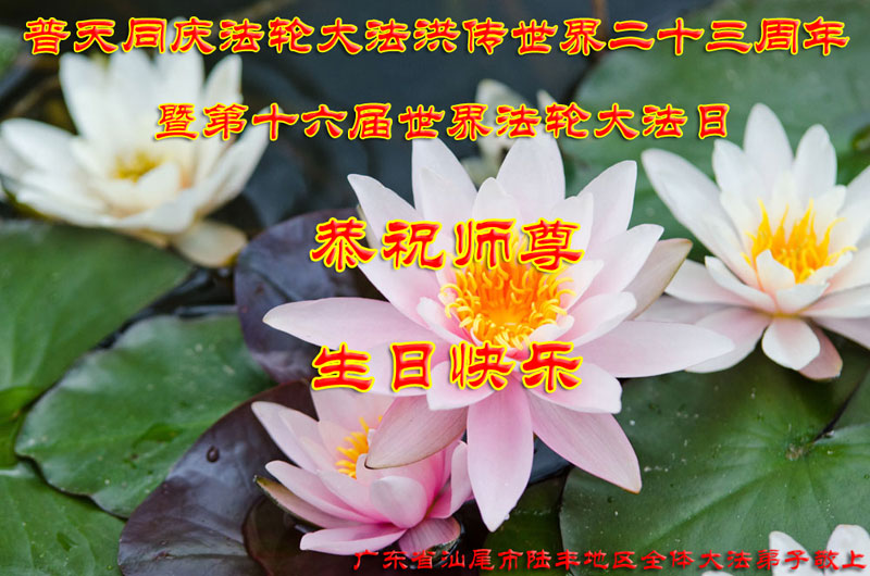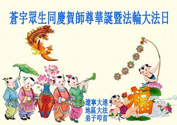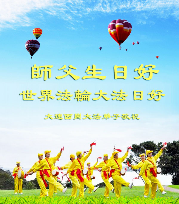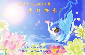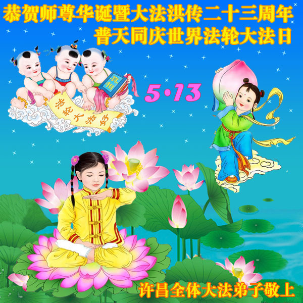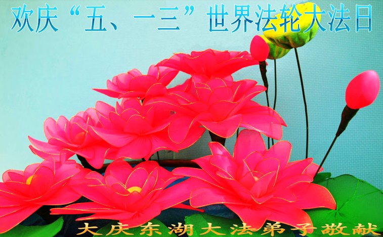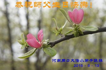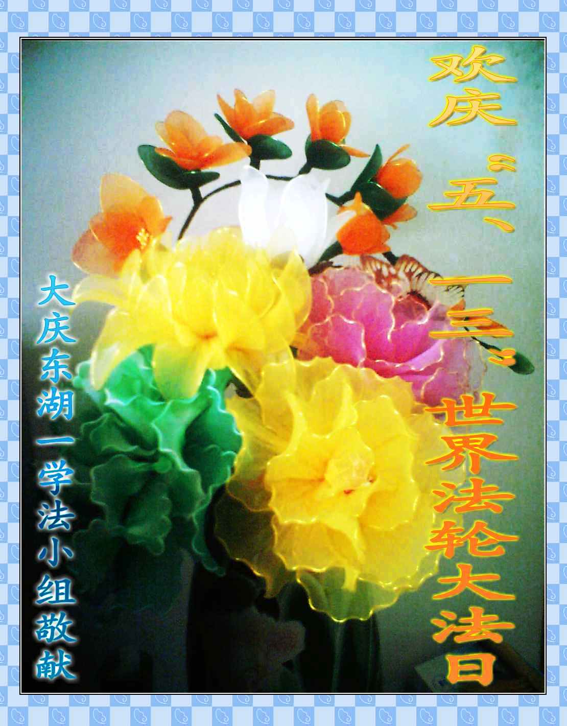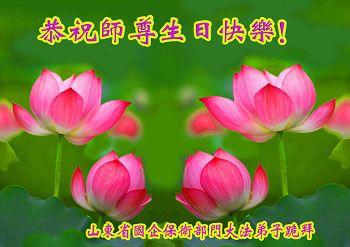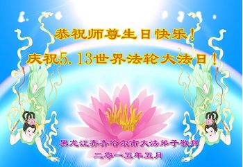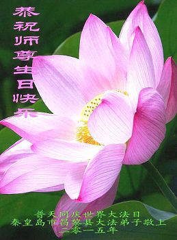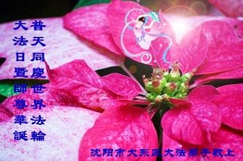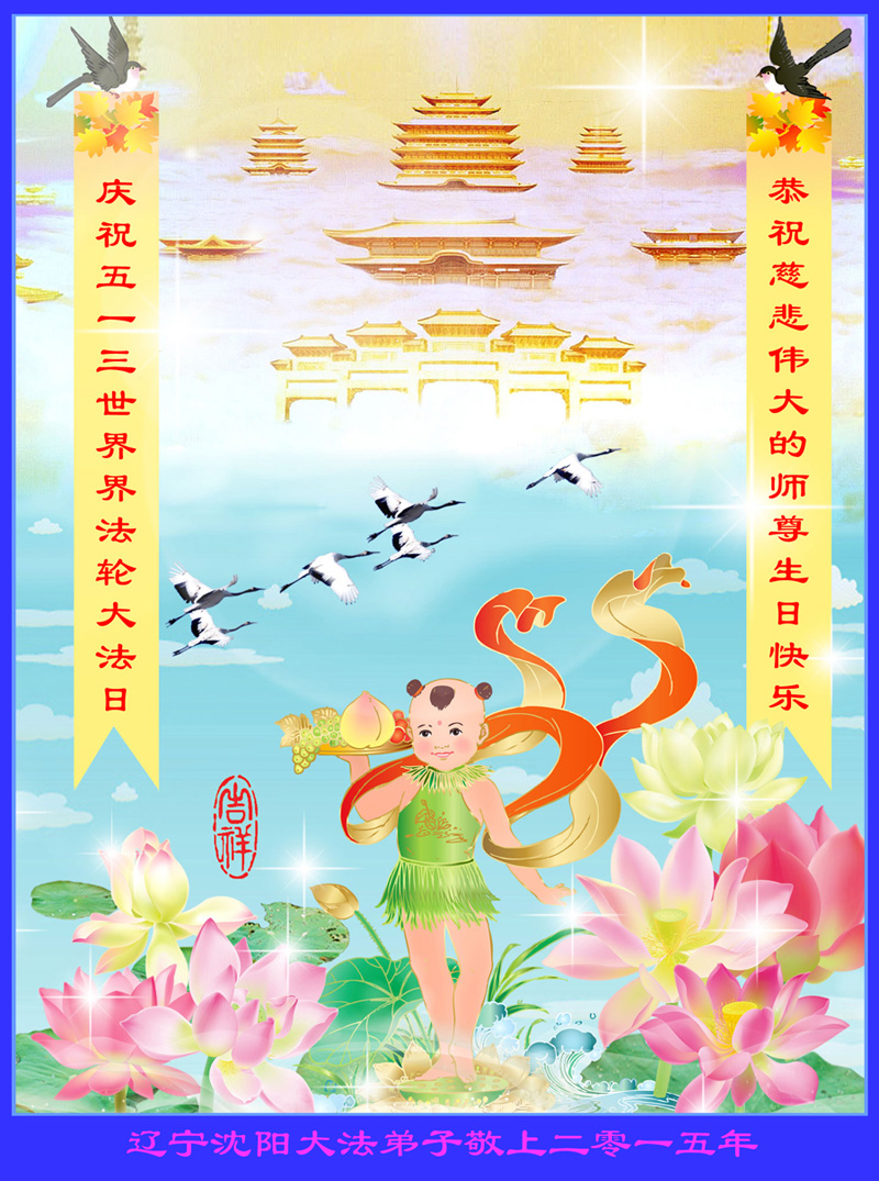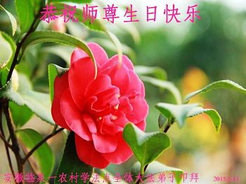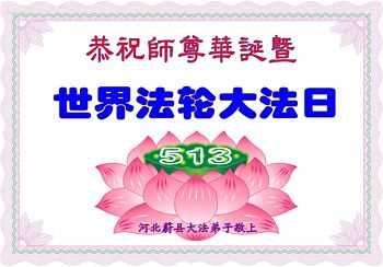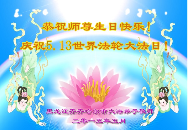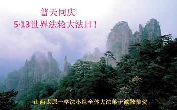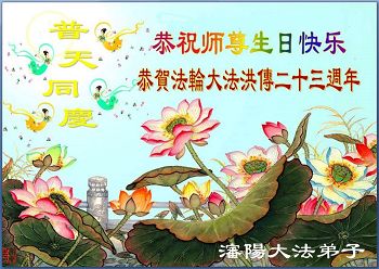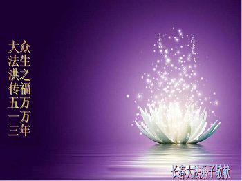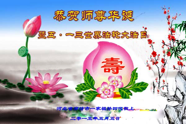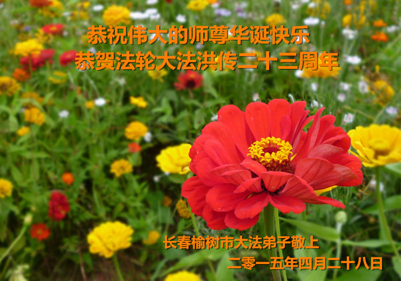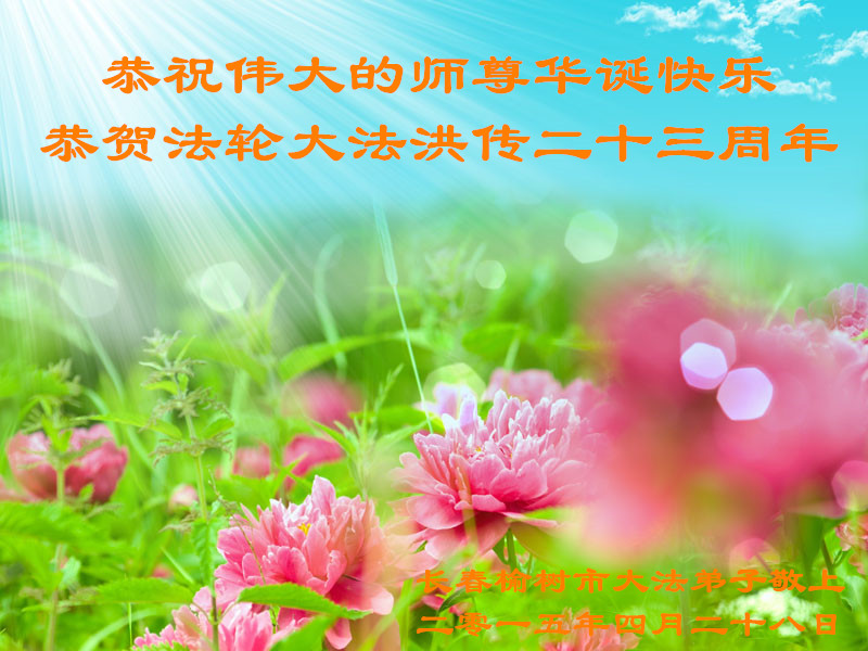 在这普天同庆的日子里,我们与全世界的大法弟子同心欢呼:祝愿慈悲伟大的师尊生日快乐!庆祝五一三世界法轮大法日!此时此刻千言万语难以表达弟子的心情,只能说一句,请师尊放心,弟子一定牢记自己历史的使命,助师正法,救度众生。慈悲伟大的师尊您辛苦了!