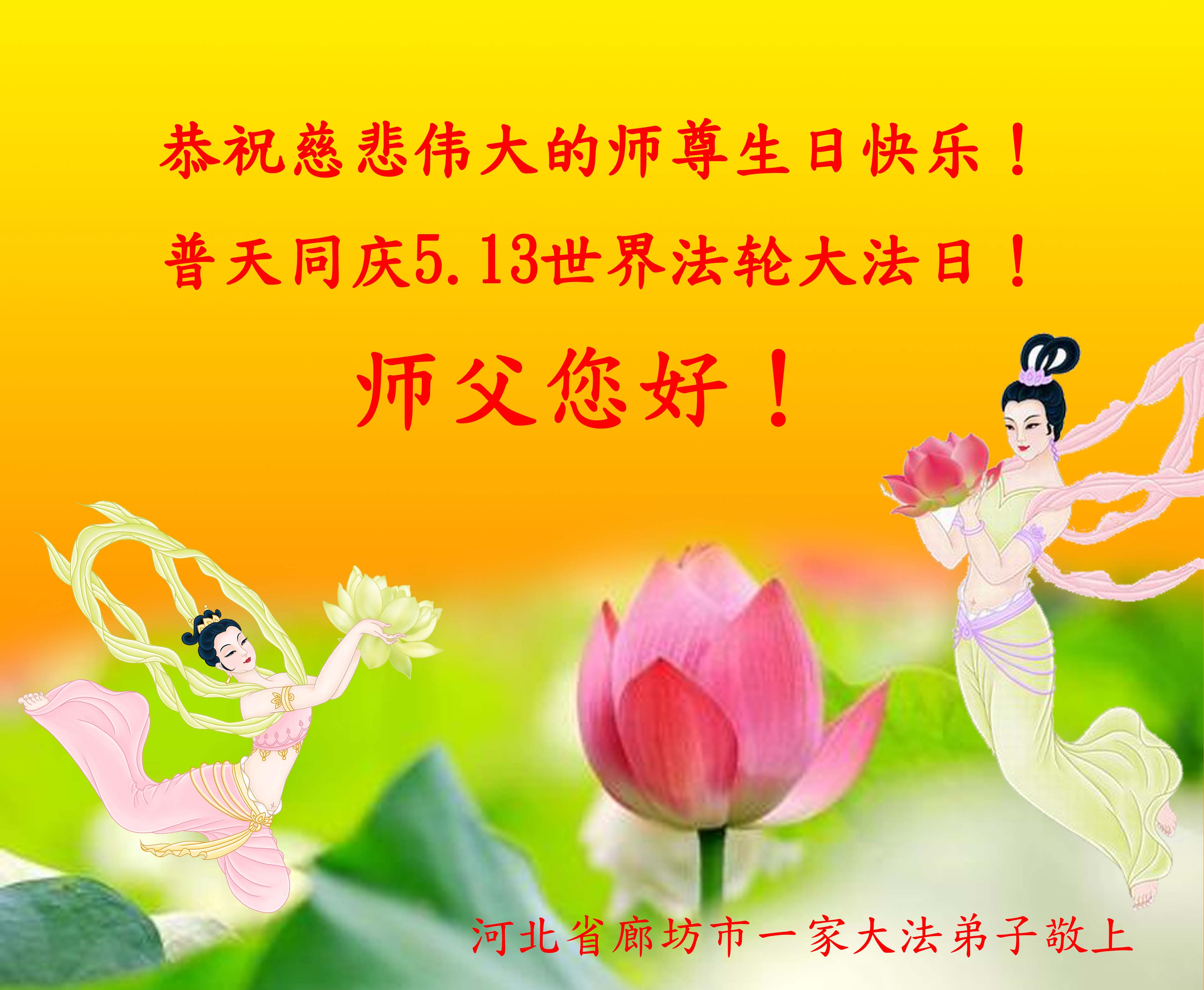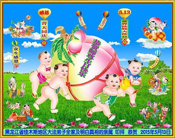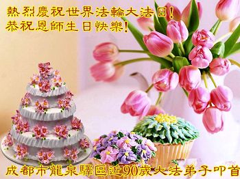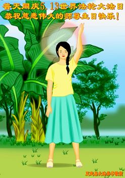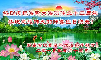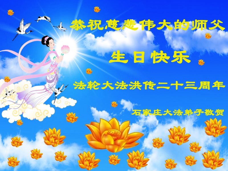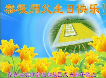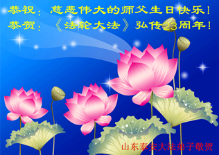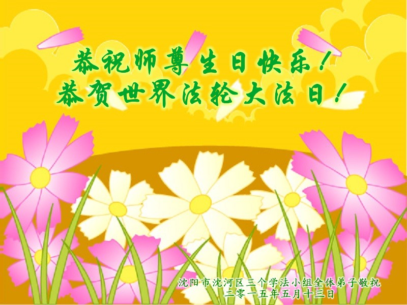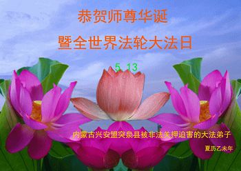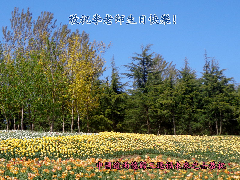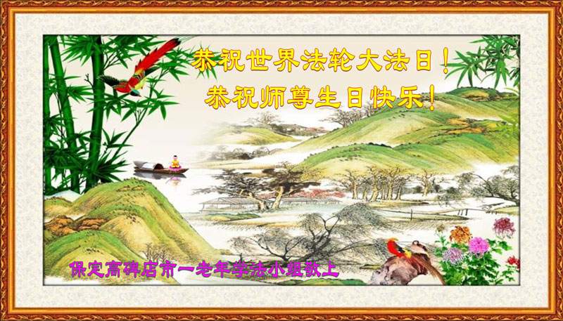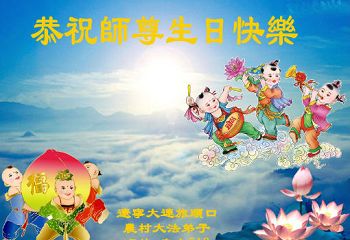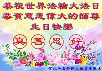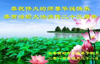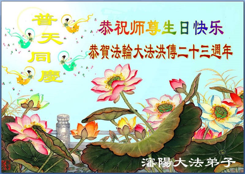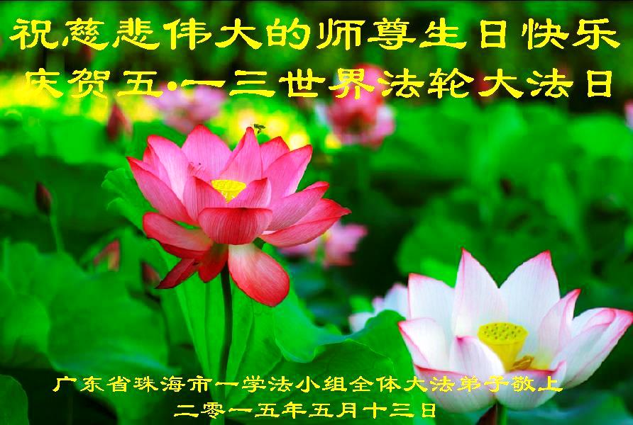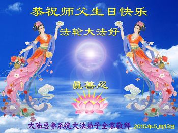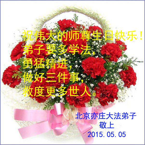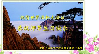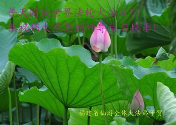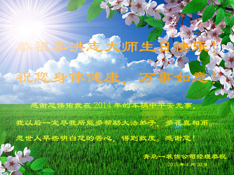 在这普天同庆的日子里,我们与全世界的大法弟子同心欢呼:祝愿慈悲伟大的师尊生日快乐!庆祝五一三世界法轮大法日!此时此刻千言万语难以表达弟子的心情,只能说一句,请师尊放心,弟子一定牢记自己历史的使命,助师正法,救度众生。慈悲伟大的师尊您辛苦了!