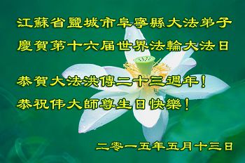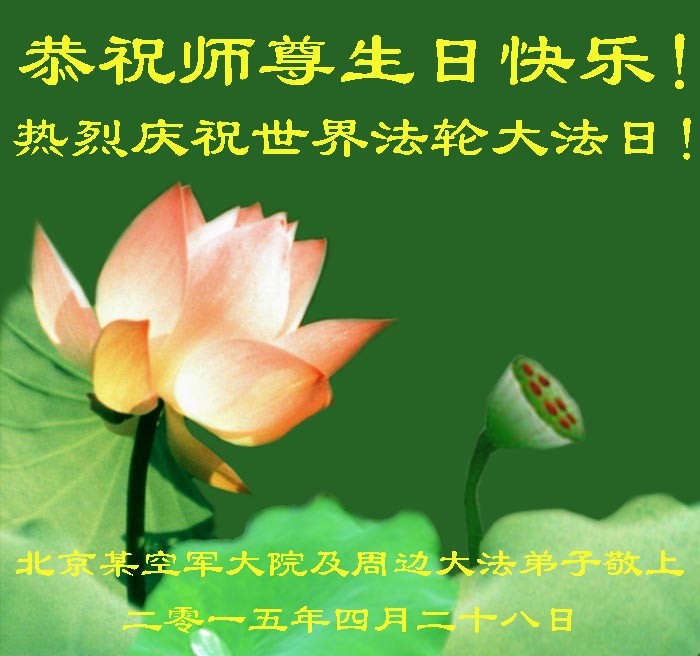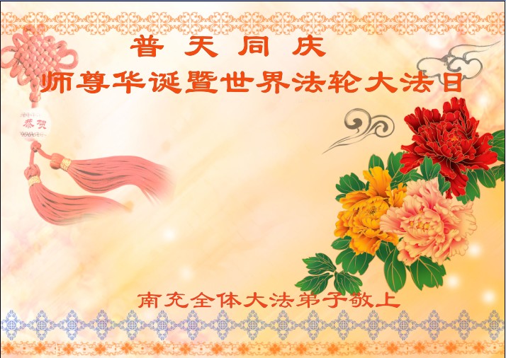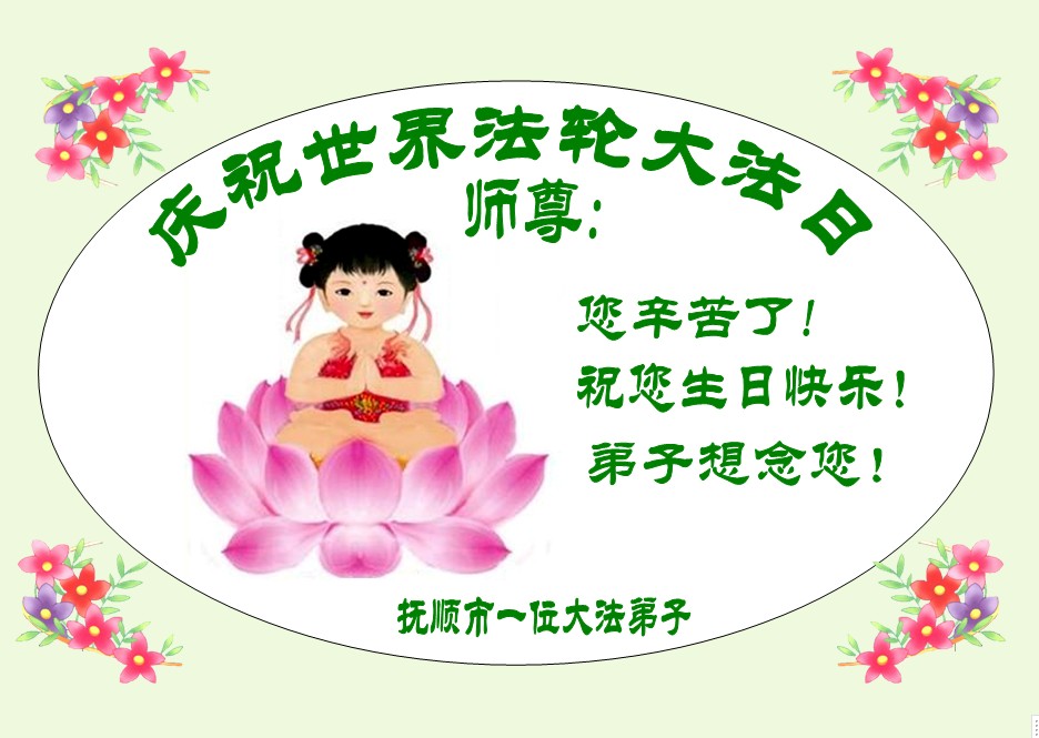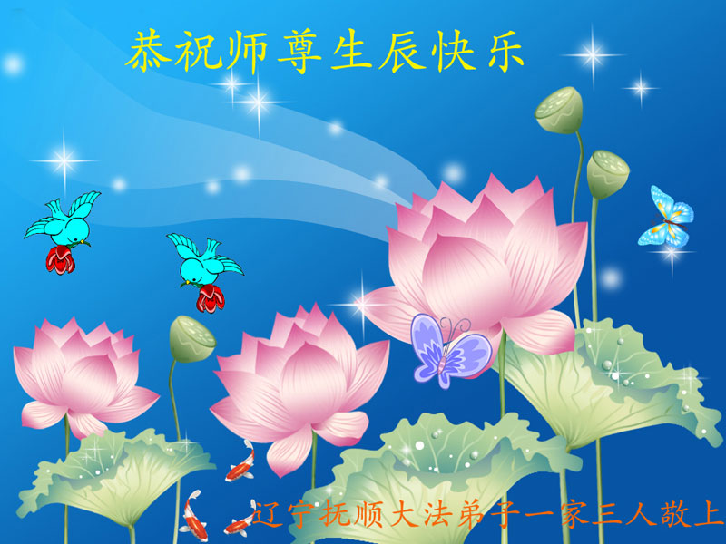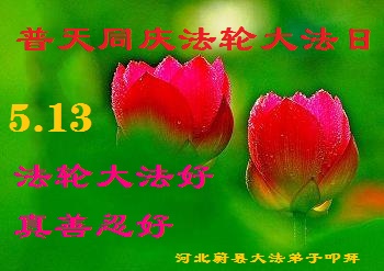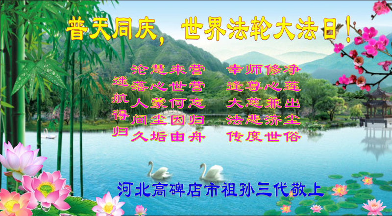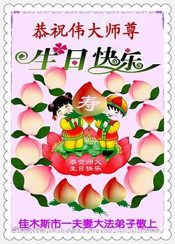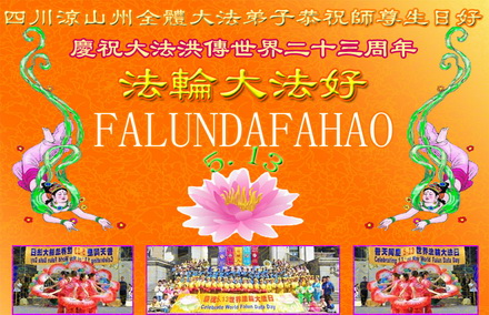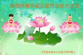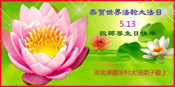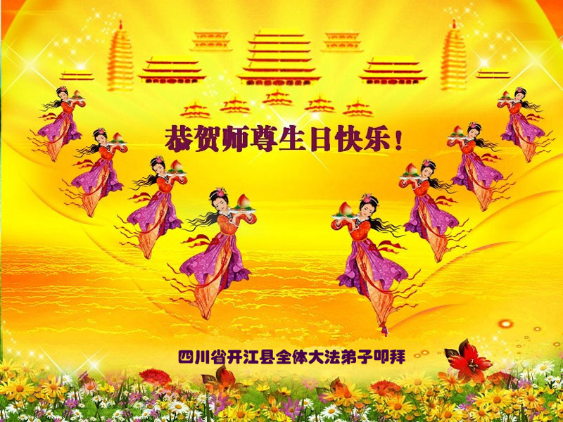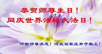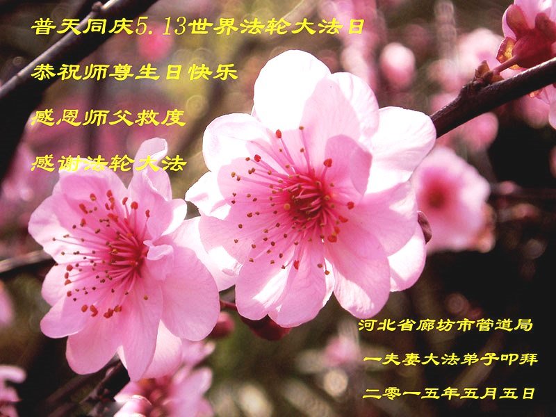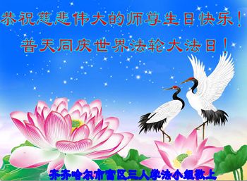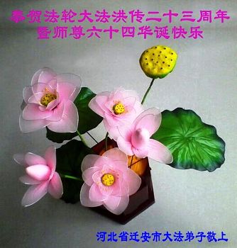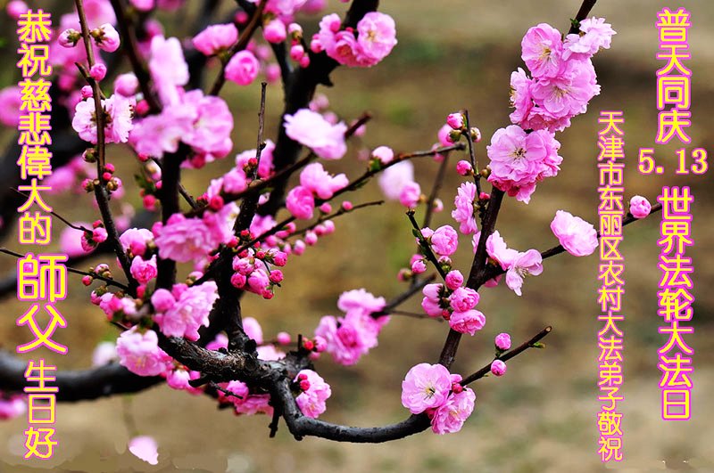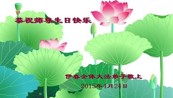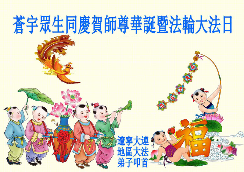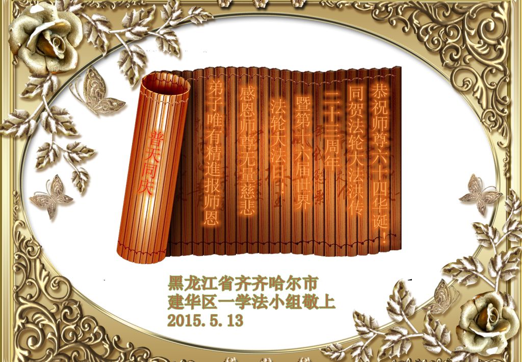 在这普天同庆的日子里,我们与全世界的大法弟子同心欢呼:祝愿慈悲伟大的师尊生日快乐!庆祝五一三世界法轮大法日!此时此刻千言万语难以表达弟子的心情,只能说一句,请师尊放心,弟子一定牢记自己历史的使命,助师正法,救度众生。慈悲伟大的师尊您辛苦了!