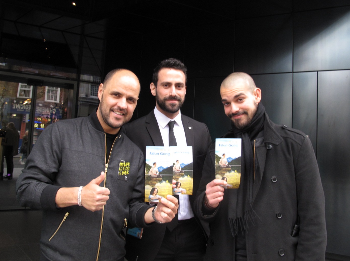 在位于唐人街区域一家大旅馆内工作的侯赛因(Hussein)和他的两位朋友站在旅店门口兴奋地观看着正在经过的法轮功队伍,他们表示以前没有认真了解过法轮功真相。看过游行、听了真相后,他们对法轮功学员传播真相信息的努力表示感谢,并表示要去努力告诉别人有关法轮功的故事。