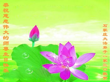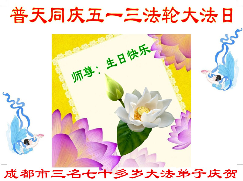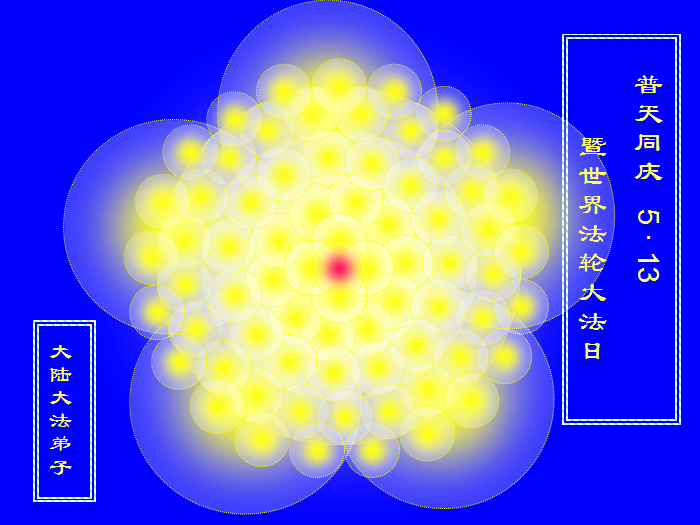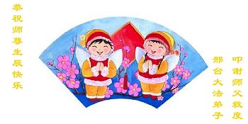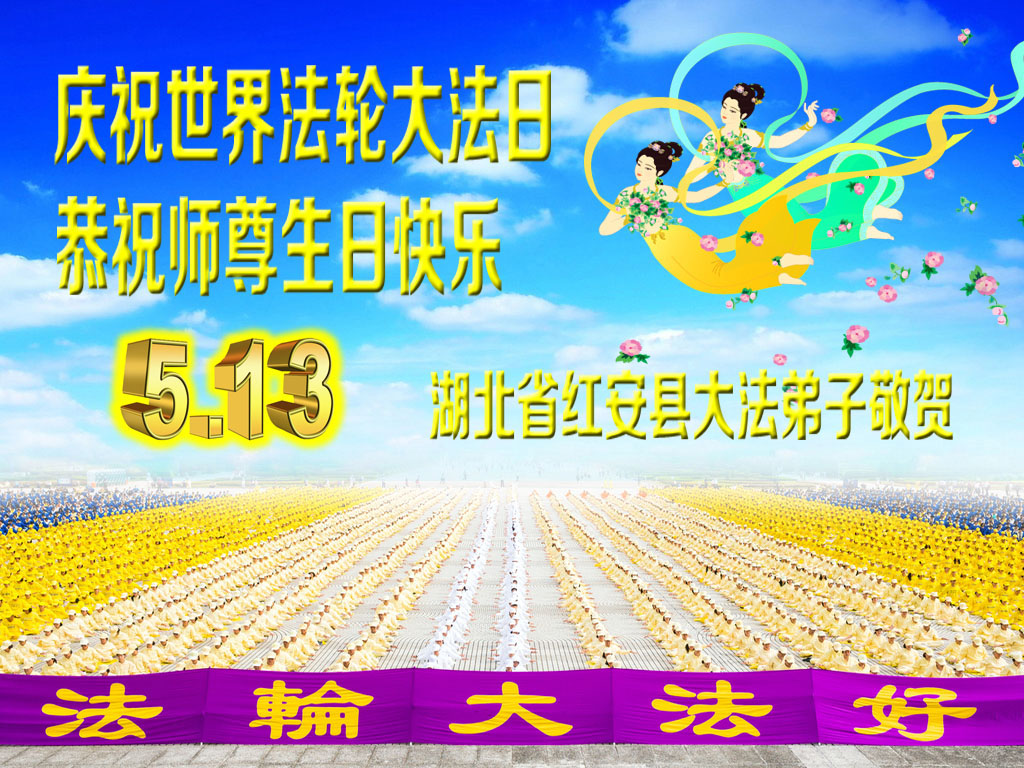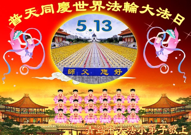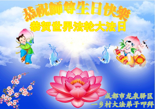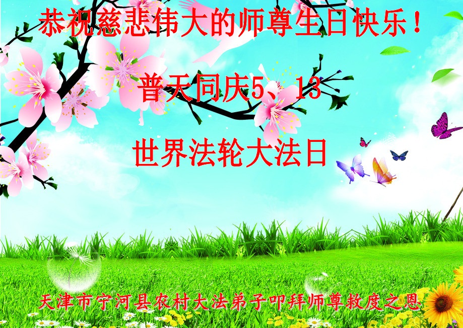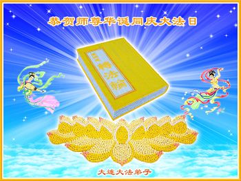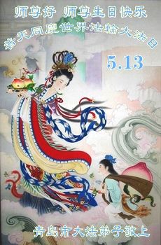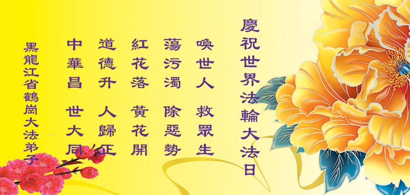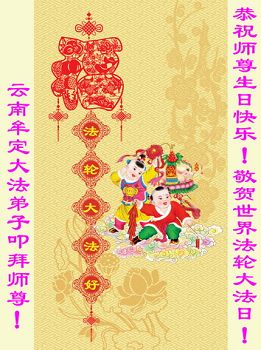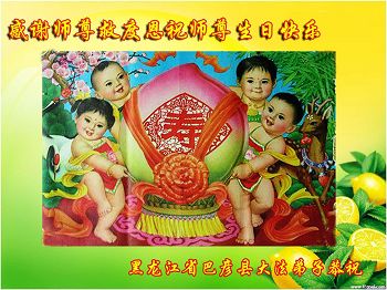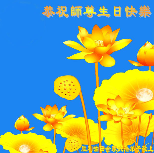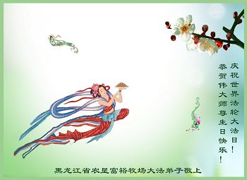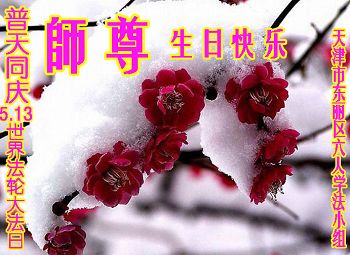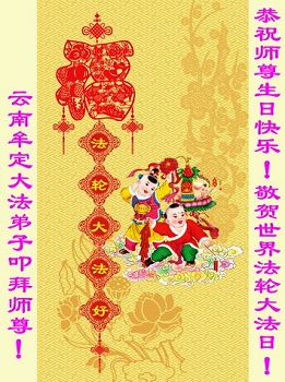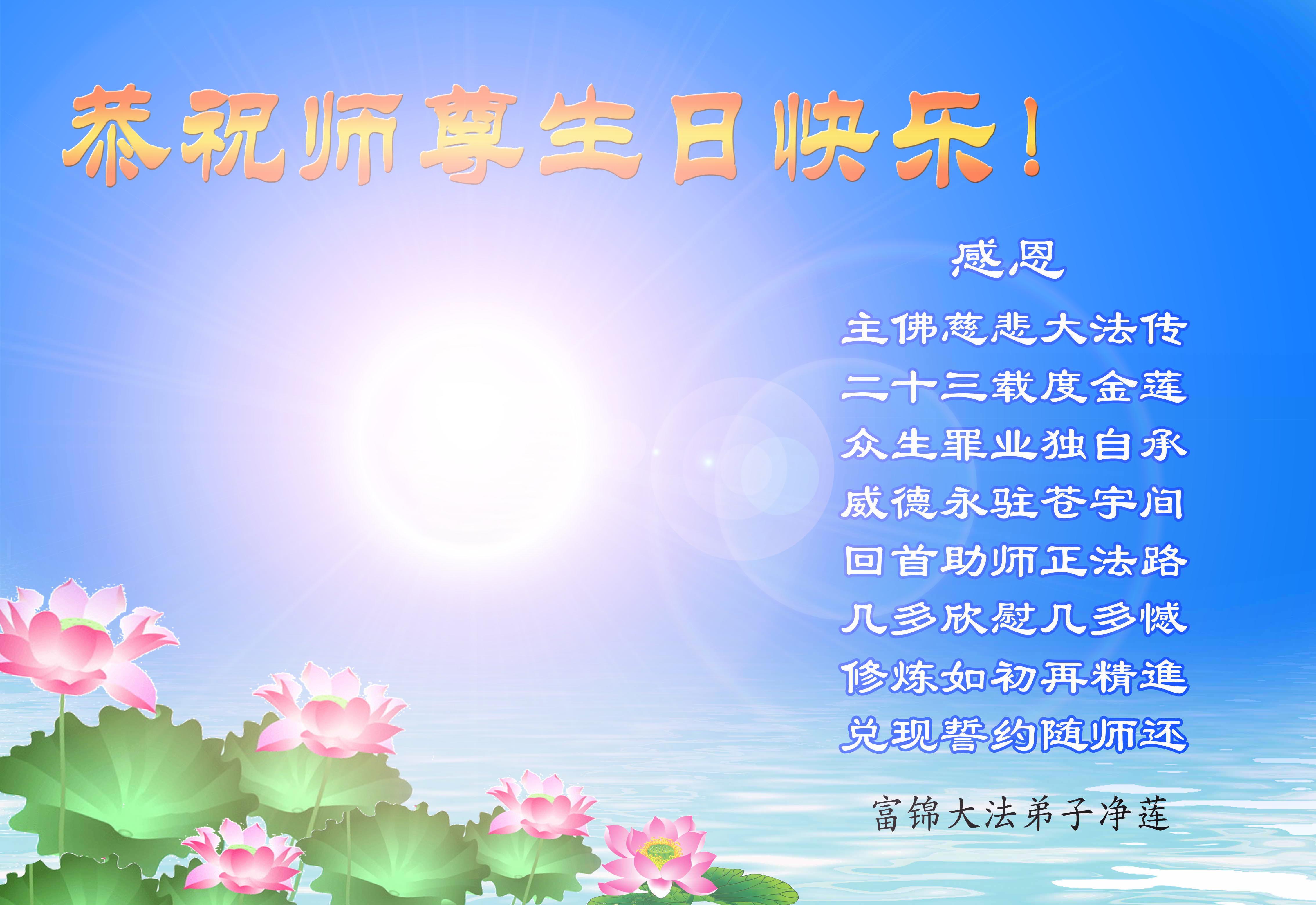 鼓乐喧天庆佳节,欢歌笑语满人间,普天同庆大法日,同祝师尊生日好,苍穹净化人觉醒,三退大潮突两亿,法徒感恩师尊度,弟子精進助师行。
