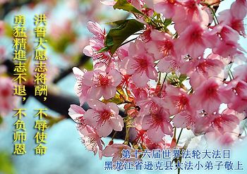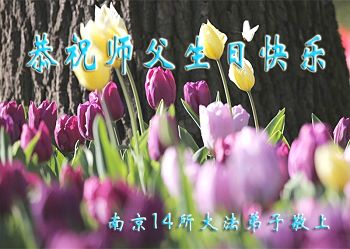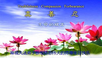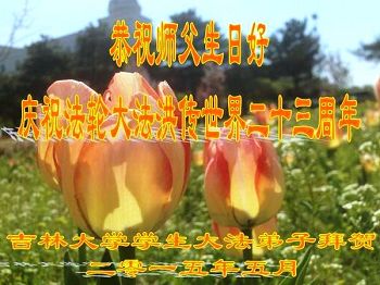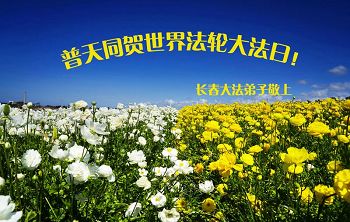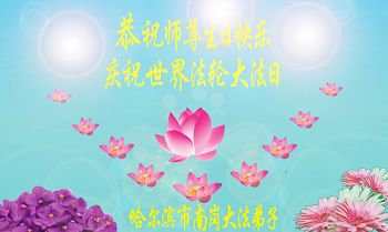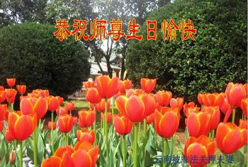 一转眼又一年的师尊的生日暨大法日到来了,我们怀着无比崇敬的心情感恩师尊的慈悲苦度。回望这一年来,在师尊的呵护下,在救度众生中我们的路走的比较平稳。许多没走出来的同修走出来了。以前能走出来的同修就更加精進。他们牢记师尊的教诲,每天奔波在大街小巷忘我的在救人。现在许多众生也渐渐的在觉醒。有一个公司的经理在他的职工大会上公开说:“我最佩服李洪志了,你看他教的那些个弟子们,那个劲头!你们要能赶上他们一点,咱们公司也早搞好了。”