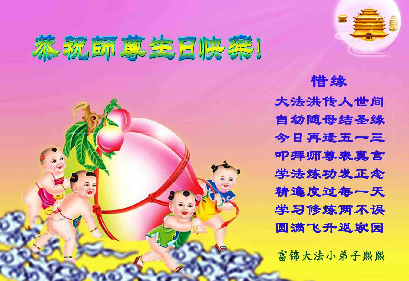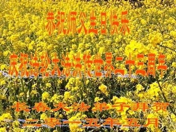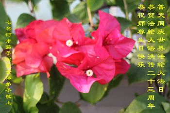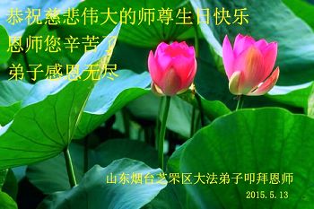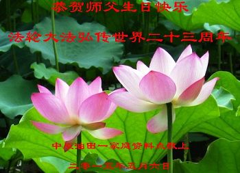 恭祝师父生日快乐!恭祝大法弘传二十三周年!祝贺世界法轮大法日!弟子在修炼的路上要更加精進做好三件事多救人盼望师尊早日归来!