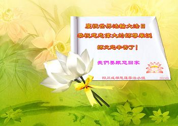 师父您好!在普天同庆的日子里,弟子们携明真相众生恭贺世界法轮大法日!叩谢师父慈悲苦度!弟子们一定不负师恩,同心精進,走好师父安排的修炼之路,整体配合,救度众生,兑现神的誓约。