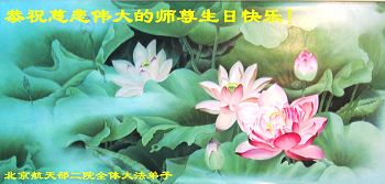 5.13世界法轮大法日暨师尊64岁华诞,我们北京航天部二院全体大法弟子叩拜慈悲伟大的师尊!在这个不寻常的日子里,我们感慨万千,感谢师尊的慈悲与呵护!感谢师尊用巨大的付出为我们延续来到时间!我们唯有精進实修,抓紧做好三件事,修炼如初,完成我们的史前大愿,不辜负师尊的慈悲苦度,让师尊有更多的欣慰。圆满随师还。再一次恭祝师尊生日快乐!