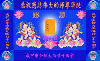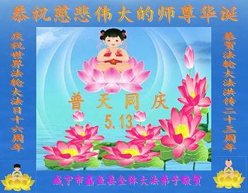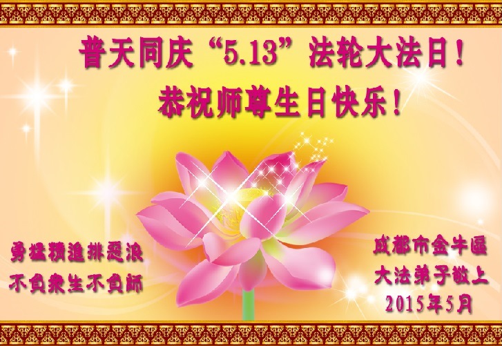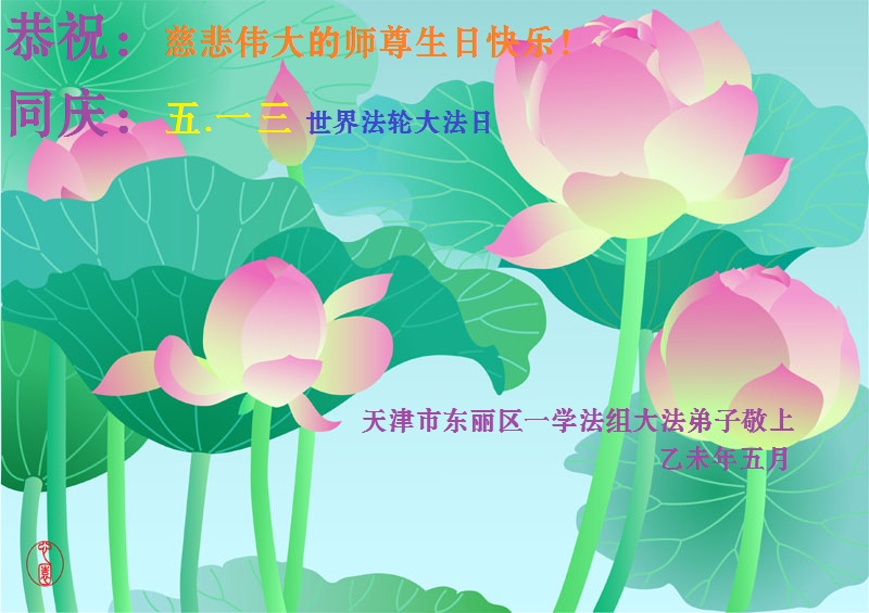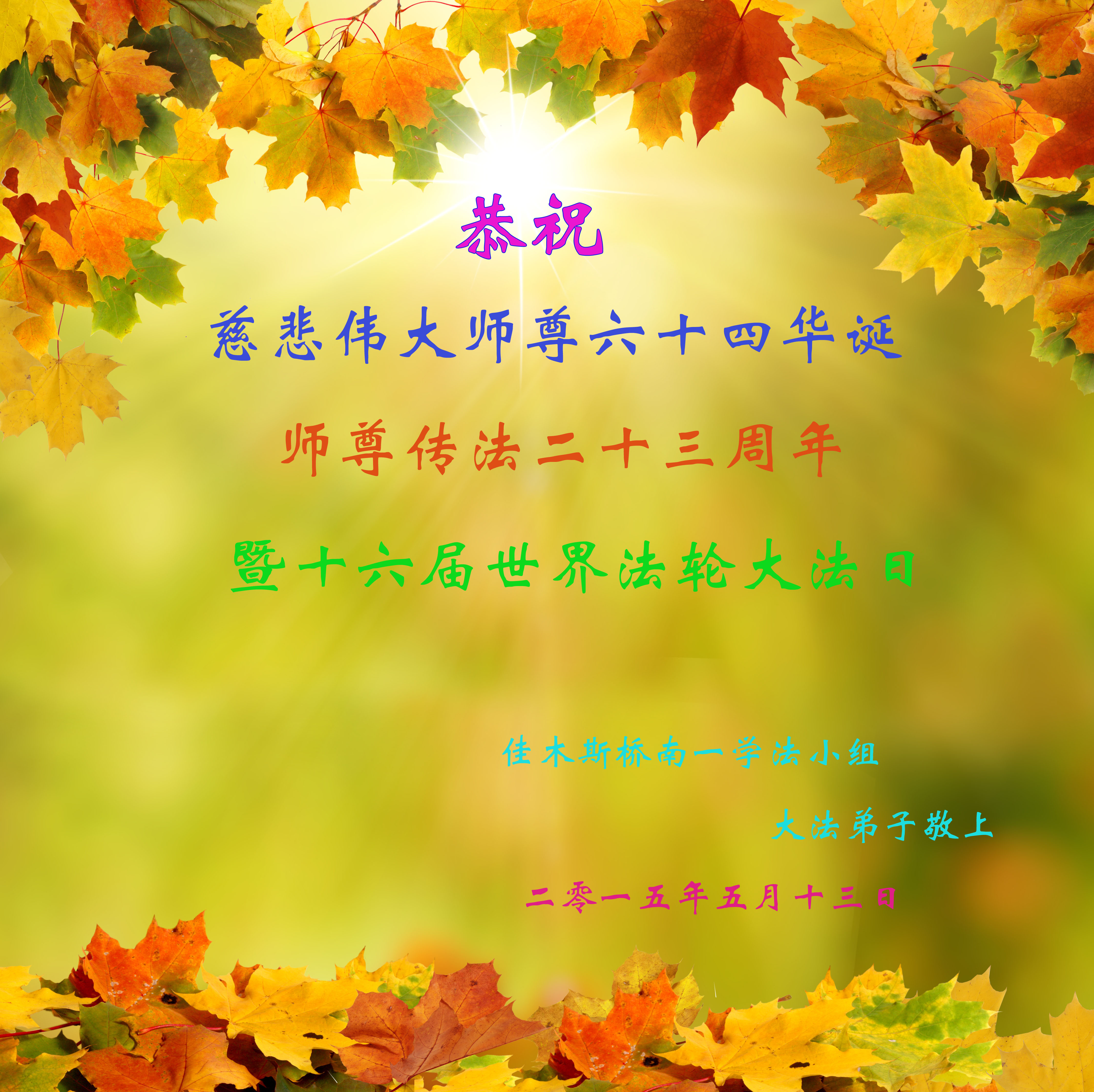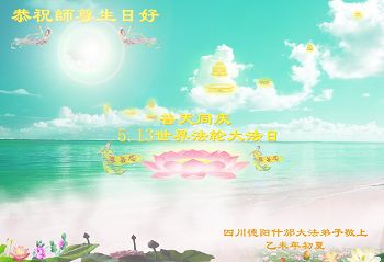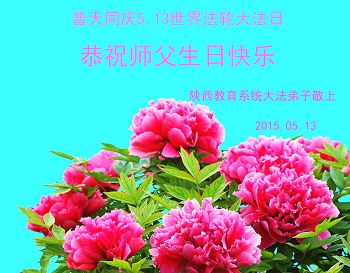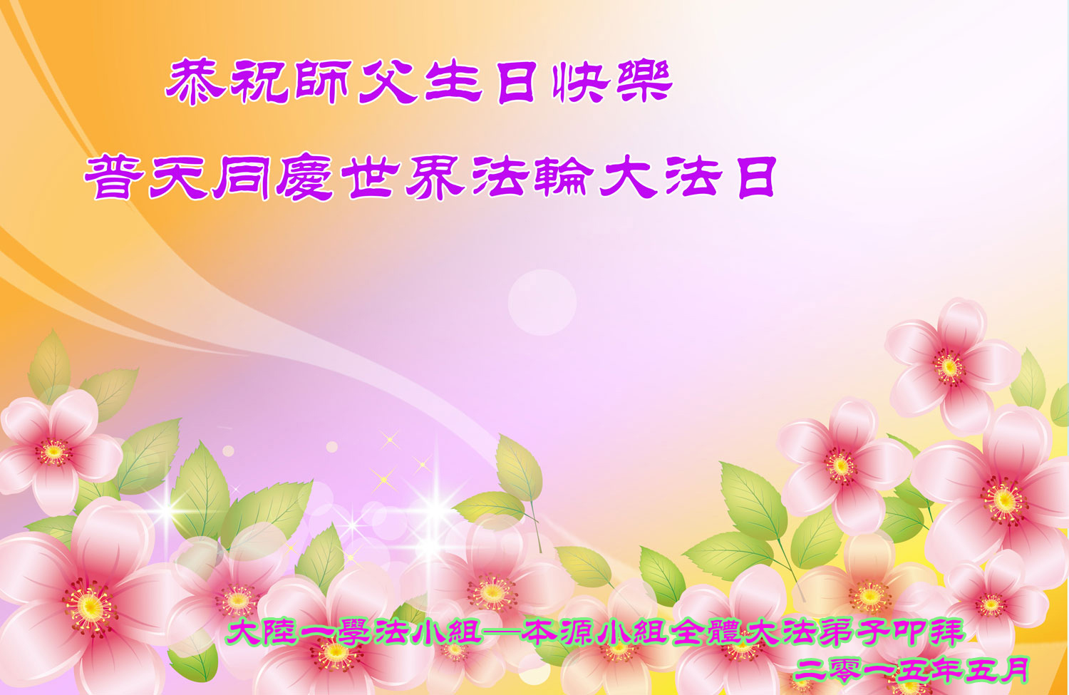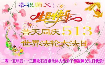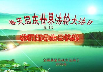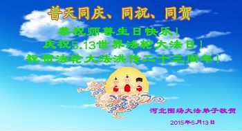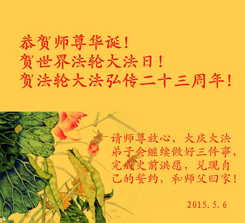 <英文版: http://en.minghui.org/html/articles/2015/5/12/150290.html>各行业大法弟子恭贺世界法轮大法日暨师尊华诞(33条)