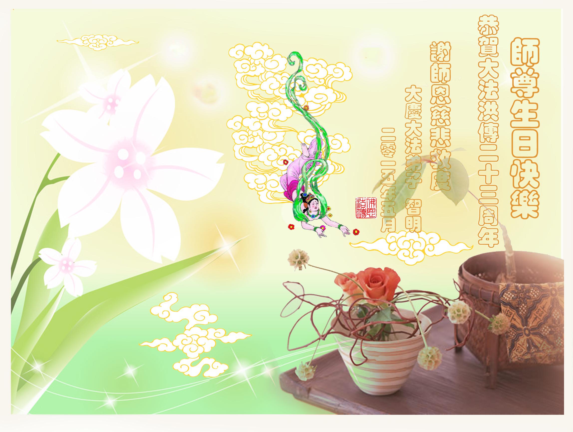 恭祝大法弘传二十三周年!恭祝世界法轮大法日!弟子感谢师尊的慈悲呵护!弟子会更加精進做好三件事多救人盼望师尊早日归来
