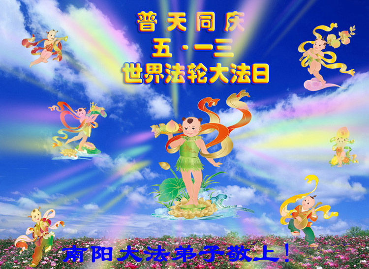 慈悲的师父好!每年的法轮大法日都是我们最幸福的时刻,此刻天上人间都在歌颂大法。我们盼着您早些回到中原大地,弟子们盼着与您相见的那一天。叩首合十!