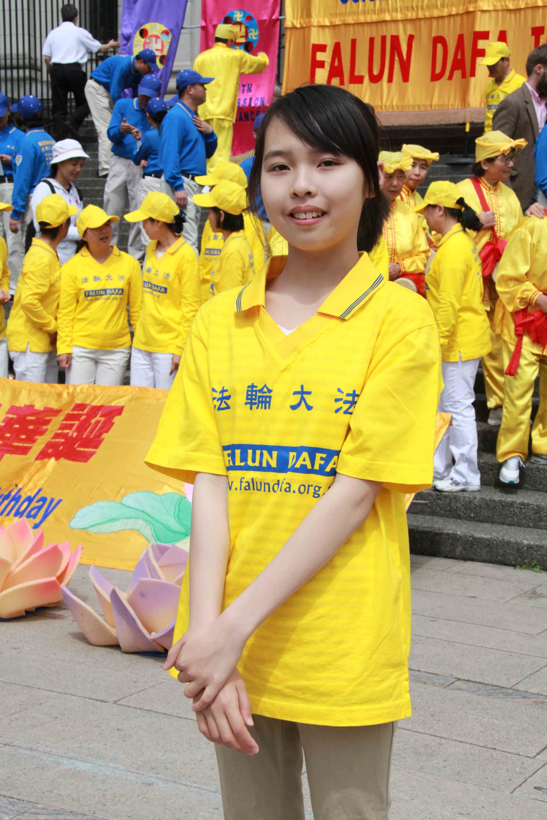 小贝贝说,“我从小就跟奶奶学大法,我觉得对健康有好处,对学习有好处,思维就更开阔,更好读书。” 小贝贝表示,尽管她十二岁就要上大学的少年班学习,但她并不感到学习累。