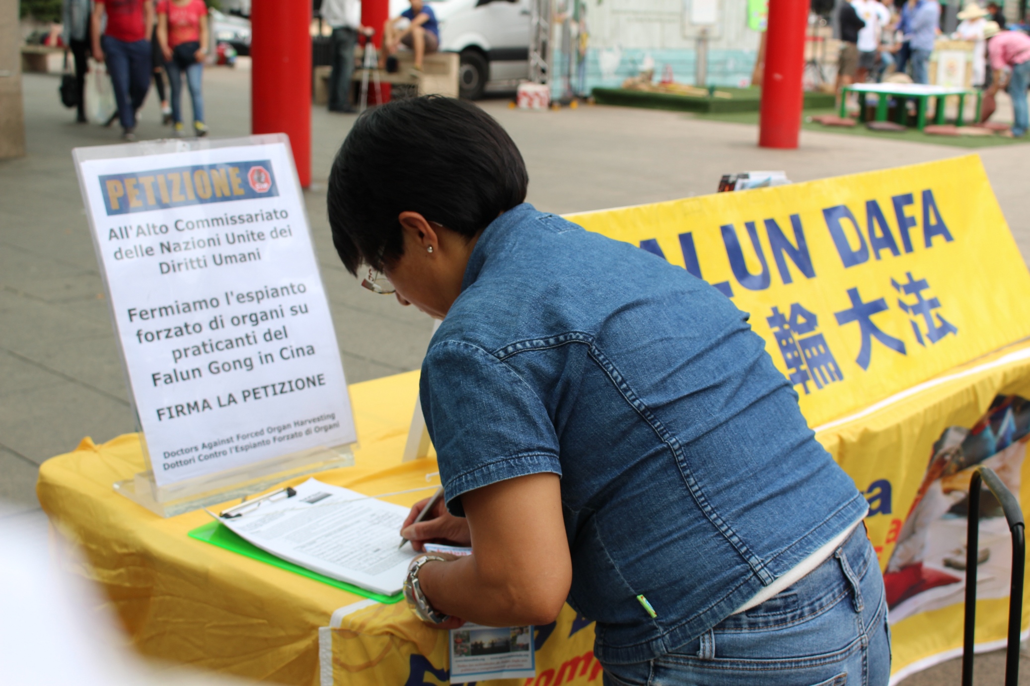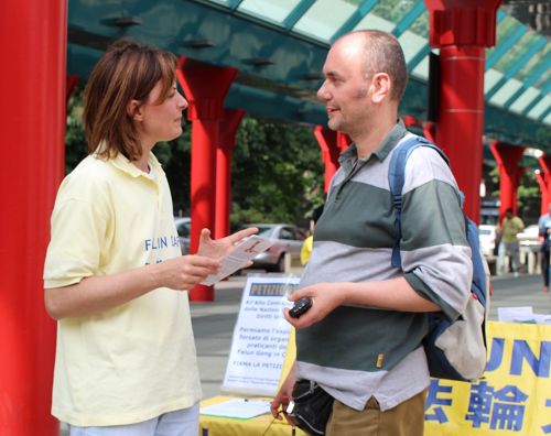 【明慧网二零一五年五月十二日】二零一五年五月十日,意大利法轮功学员在米兰市中心举行活动,纪念法轮大法洪传二十三周年,庆祝世界法轮大法日暨师尊华诞。