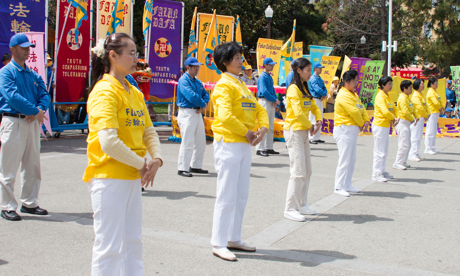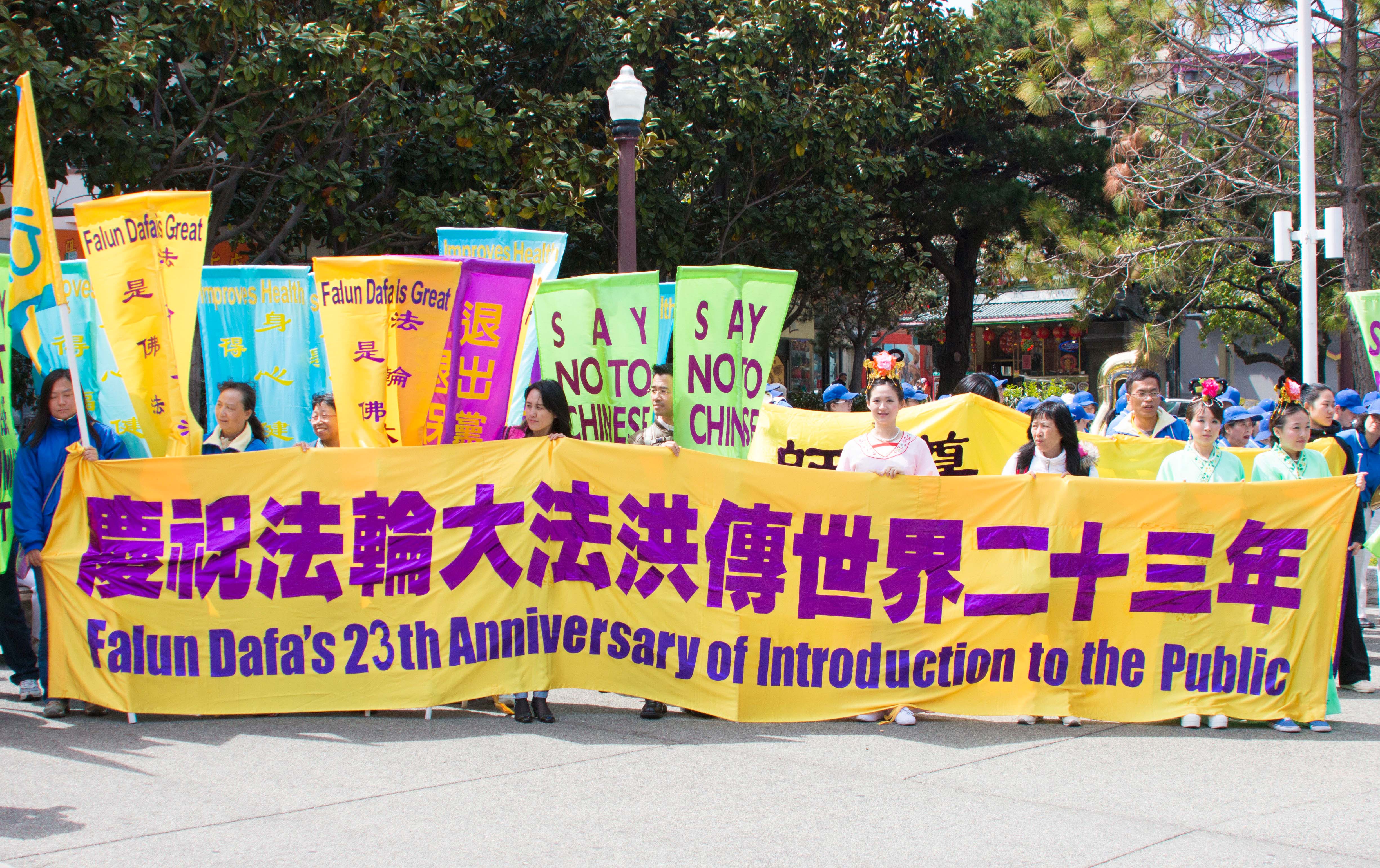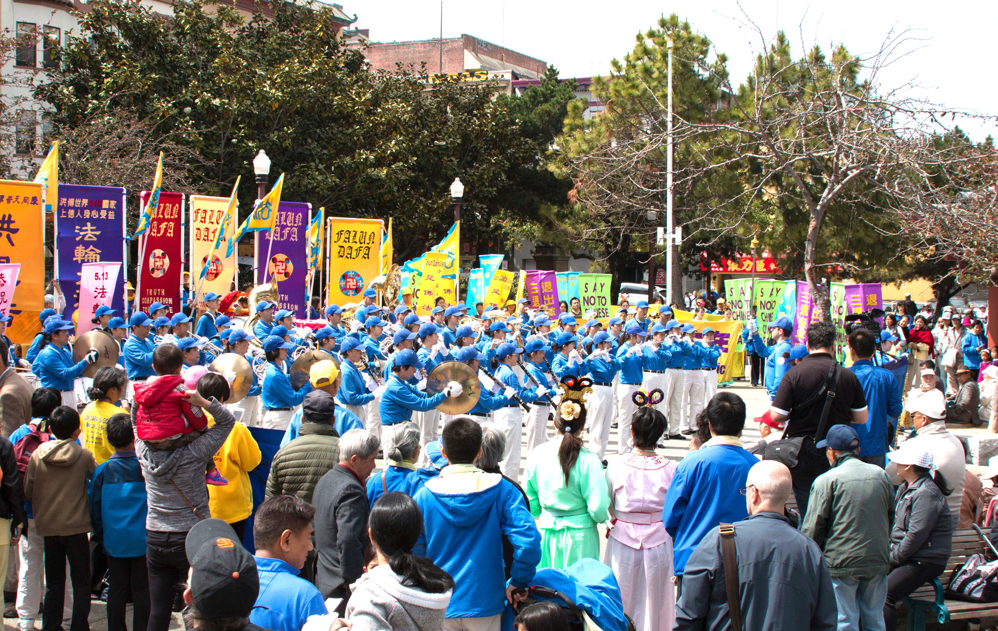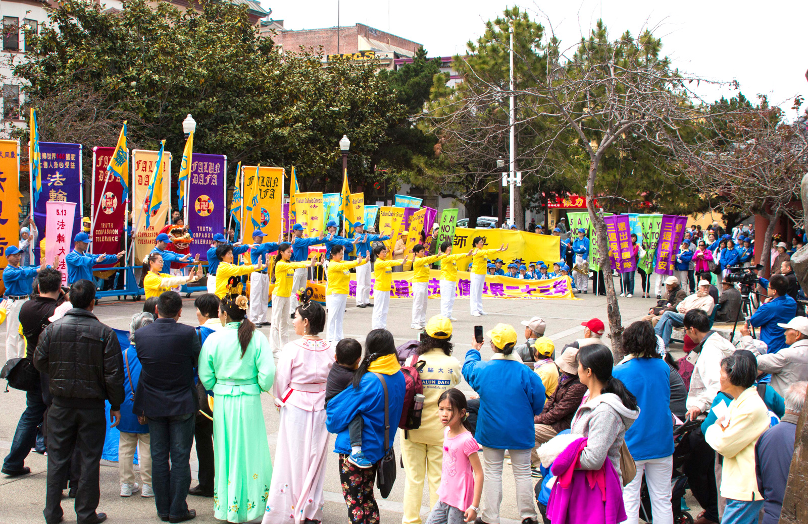 【明慧网二零一五年五月十二日】(明慧记者王英旧金山报导)二零一五年五月十日下午,旧金山湾区的数百名法轮功学员在中国城花园角广场举行庆祝活动,恭贺法轮大法创始人李洪志大师华诞暨世界法轮大法日,庆祝大法洪传世界二十三周年。