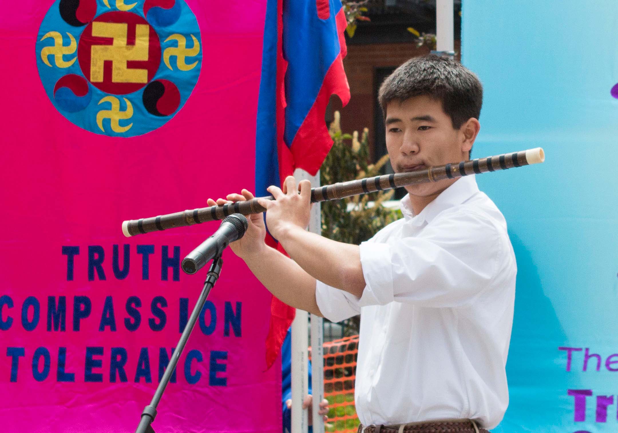 由法轮功学员组成的美西天国乐团演奏的法轮大法好等乐曲。雄壮的乐曲演奏赢得了现场观众的热烈掌声。乐团成员有很多硅谷工程师,他们在业余时间练习吹号。吹大号的乐团成员尚昌和是物理学博士。修炼前尚先生的身体很不好,患有失眠症、高血压和膝盖关节损伤等疾病。一九九五年在中国大陆接触法轮功后,他认为法轮功是从教导人从做好人做起,修炼自己,从而得到提高和升华。修炼法轮功后,疾病不治自愈。他希望大家都来了解法轮功真相。
